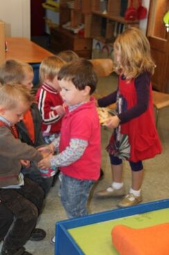 Planning: - Maandagmiddag nemen we de trein naar Kortrijk. De papa van Mira staat met de theatervoorstelling "Muurtje muurtje" in de stadsschouwburg. We keren terug met de lijnbus en zijn tegen 16h op school. De voorstelling is enkel voor eerste kleuters. Juf Lies gaat mee als extra begeleidster. Gelieve in de loop van de week 4 mee te geven. - Donderdag is het de dag van het brood. Met de kleuters gaan we boterhammen smeren en die lekker opsmullen! - In de loop van de week starten we met het thema herfst, afhankelijk van wat groeit uit de theatervoorstelling "Muurtje muurtje". - Vrijdagnamiddag rond 14h spelen we gezelschapsspelletjes. Iedereen is welkom om een groepje kleuters te begeleiden!