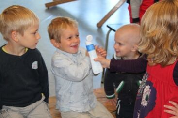 4 En nu BLUSSEN!!!!! Met water spuiten, hiervoor willen we toch allemaal brandweerman worden...