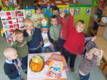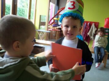 We begonnen de week met het voorbereiden van de verjaardag van Jayden. Een kroon werd bij dinsdag gehangen: nog 1 keer slapen! Hoeveel jaar wordt Jayden? Wie is ook al 3 jaar? Wie is de volgende jarige? We luisterden naar het verhaal over Anna die haar verjaardag viert. Dinsdag kwamen de (ook jarige) mama en de oma van Jayden naar de klas om met ons mee te vieren. Ze hadden foto's mee van Jayden als baby, zijn geboortekaartje, zijn knuffel, zijn eerste truitje en ook zijn eerste schoentjes. Jayden is al veel gegroeid! Ariano vond het bijzonder dat de eerste schoenen van Jayden sportschoenen zijn. Baby's kunnen toch niet sporten? Mama en oma, bedankt voor dit gezellig en leerrijk moment!