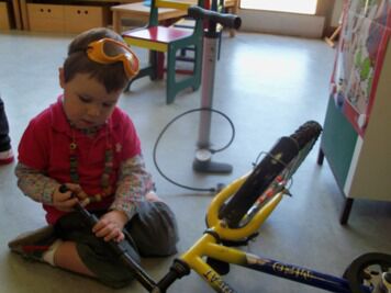 Onze timmerhoek werd het atelier van de fietsenmaker.