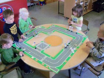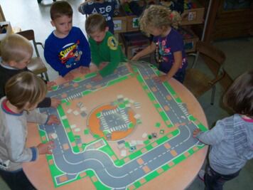 Het verkeer. We kunnen er niet omheen en het is des te belangrijker dat we van jongs af aan weten hoe dat allemaal in elkaar zit en welke gevaren daaraan verbonden zijn. We startten het thema met een kringgesprek: Hoe kom je naar school? Doen jullie een fluojasje aan en waarom?