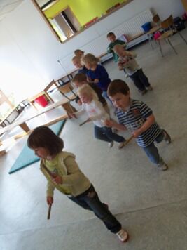 5 maandagen op een rij. Een uurtje in de namiddag. Heel bijzonder zijn de muzieklessen van juf Fabienne! In het kader van een kunstproject waar onze school graag aan deelneemt komt juf Fabienne van de muziekacademie naar de Droomhut. Ze laat ons heel wat ervaren en beleven met en op muziek.
