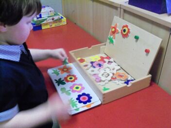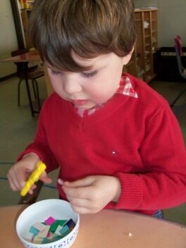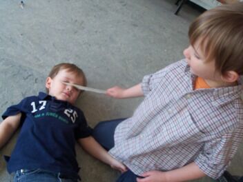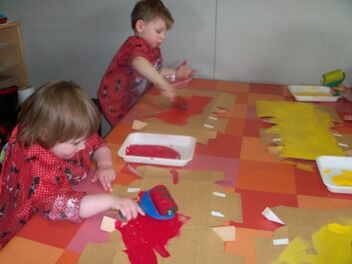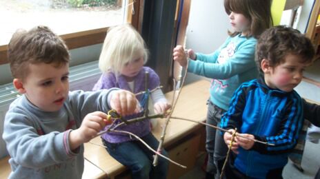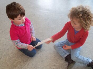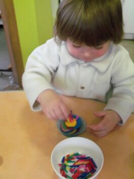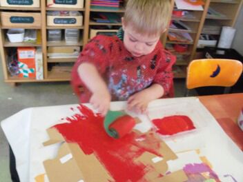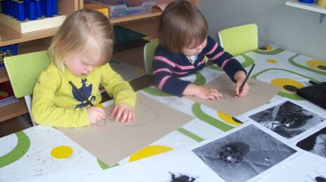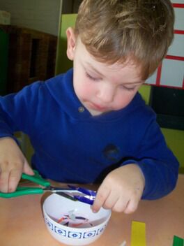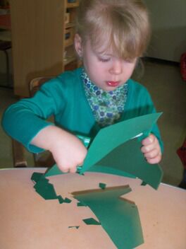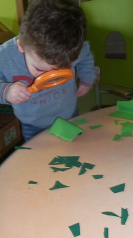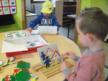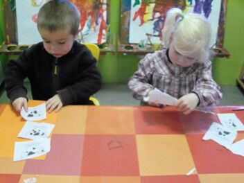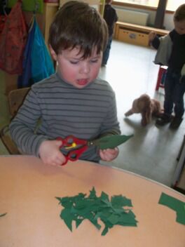 Terwijl enkele kleuters boomblaadjes probeerden te knippen ...
