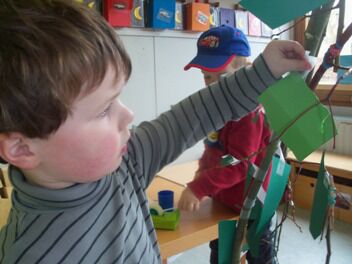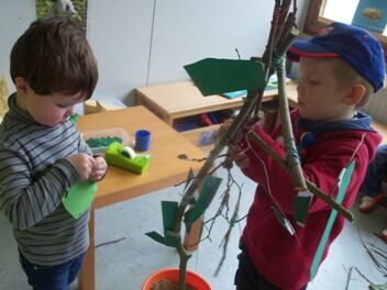 En nu nog de zelfgeknipte blaadjes aan de boom hangen.