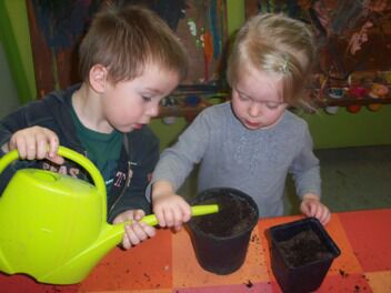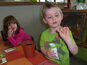 Dat die kleine zaadjes uitgroeien tot groenten vonden de kleuters raar.