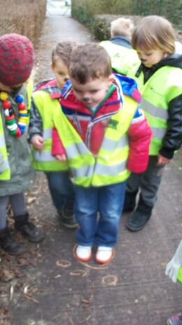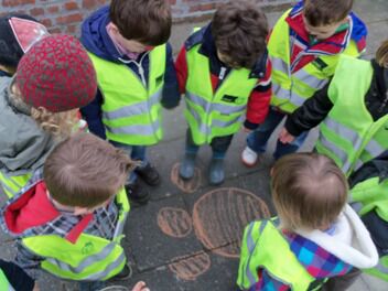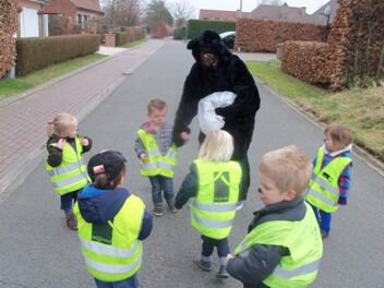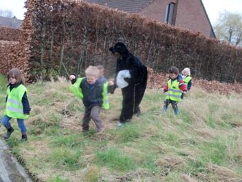 Als we de schoolpoort buiten wandelden wisten we niet of we nu best naar rechts of naar links gingen. Tot een kleuter een berenspoor vond. Het leek erop dat we een hele grote beer zouden vinden. In zijn poot pasten meer dan 3 kleutervoeten!