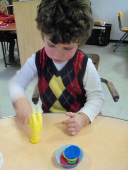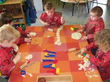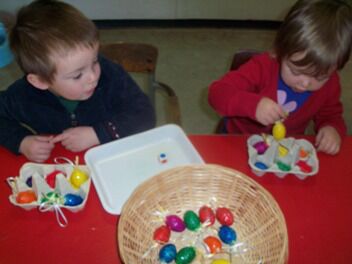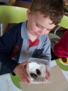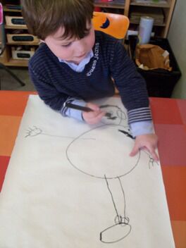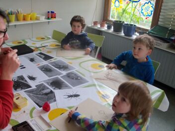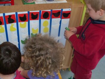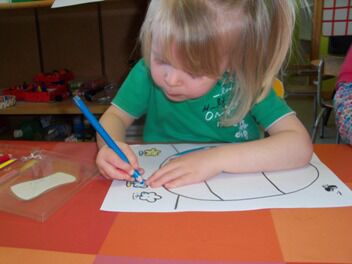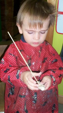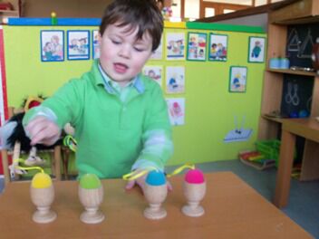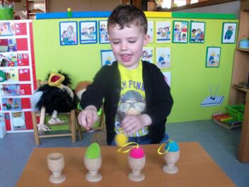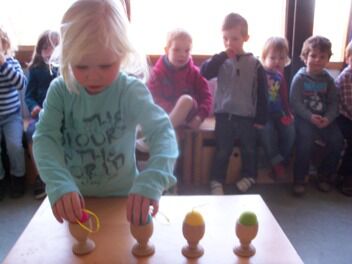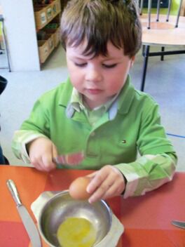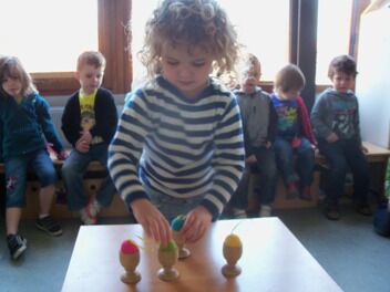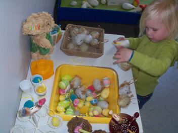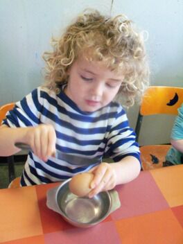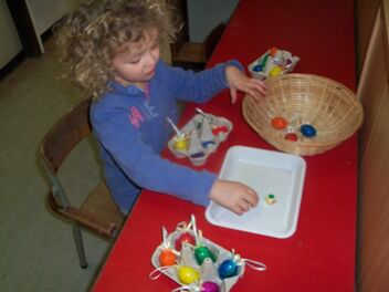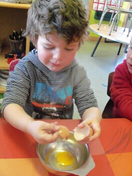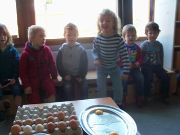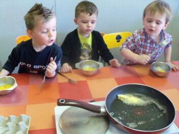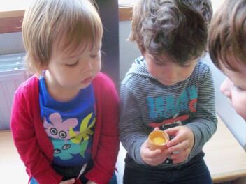 Meestal gebeurt het dat de kleuters een eigen wending geven aan een thema. Bij thema herfst toonden de kleuters grote belangstelling in uilen, thema verkeer mondde uit in het werken rond de brandweer, maar deze keer bleven de kleuters bij wat de eerste dag aangeboden werd door de juf: "het ei"