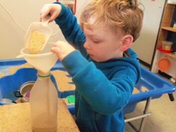 Waar we in juli naar verlangden krijgen we in september! Het heerlijke nazomerse weer lieten we niet zomaar aan ons voorbij gaan. De hoogste tijd voor nog wat waterpret. Volop genieten... en ondertussen ervaarden we dat water heel koud of warm kan zijn. Lauw water is heerlijk... Suse heeft ontdekt dat een volle emmer water heel zwaar is. Sommige voorwerpen drijven en andere zinken tot op de bodem. Het leukst van al is een berg schuim maken. In dit warm weer mocht een verfrissend voetbadje niet ontbreken. Uit de gesprekken bleek dat heel wat kleuters op vakantie of thuis genoten van zwembadpret. Ook de ligstoelen en parasols waren hen niet onbekend. Waren het nu de mama's of de papa's die er te vinden waren....? Dat laat ik liever in het midden.