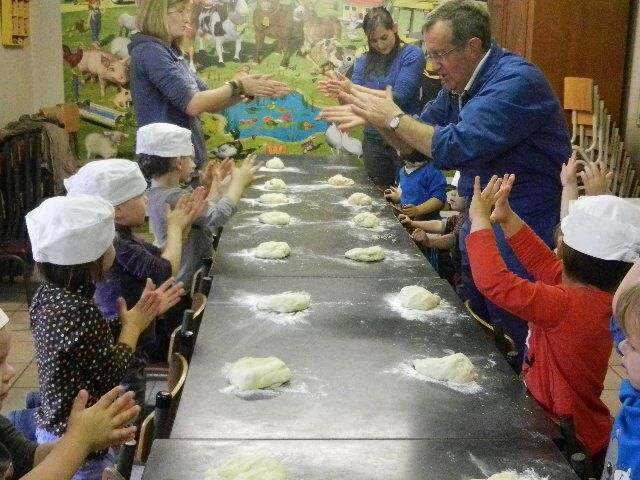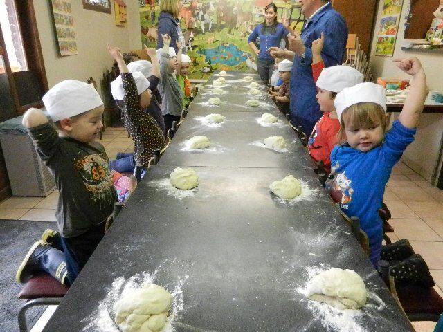 Zo trots als een gieter brachten de kleuters een lekker geurend zelf gebakken broodje mee van de boerderij!