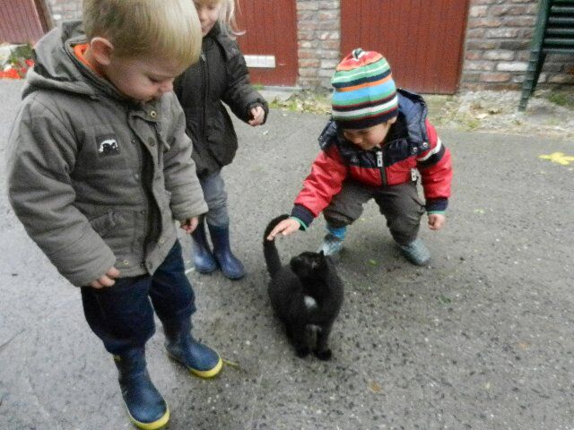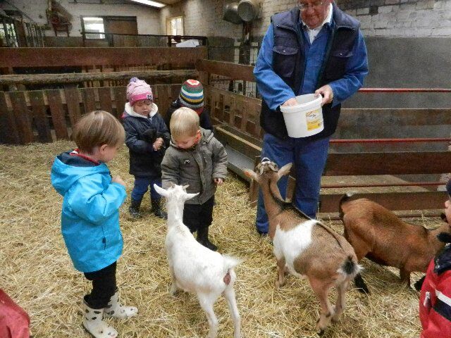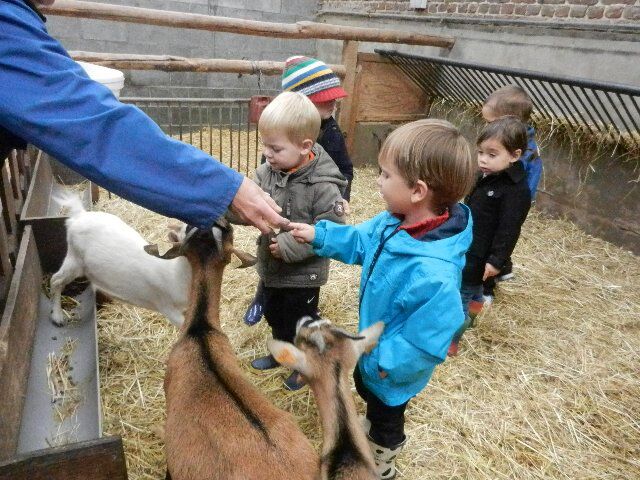 Vrijdag 5 oktober vertrokken we met een bus enthousiaste kleuters naar de kinderboerderij. Samen met boer Marc gingen we op stap om de dieren eens goed te verwennen.