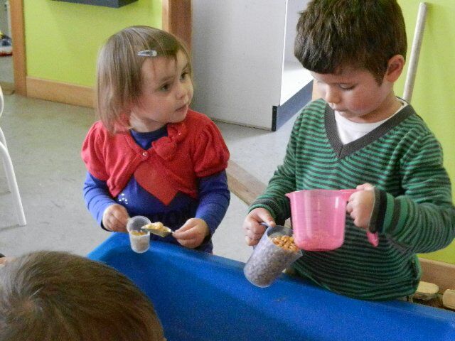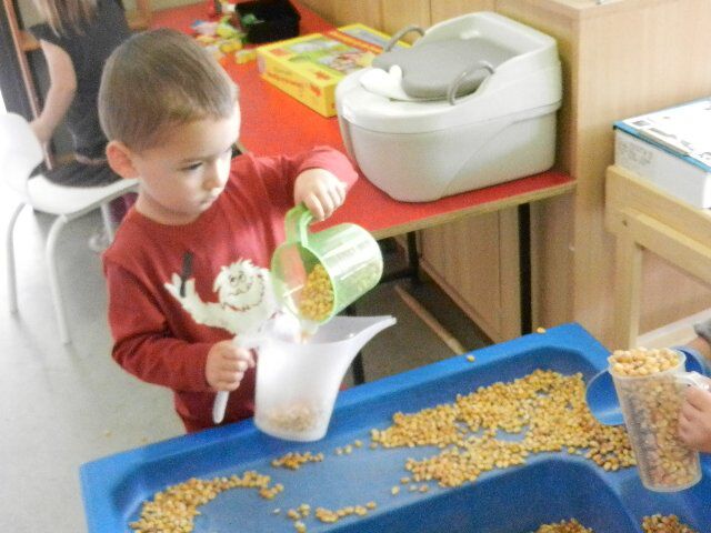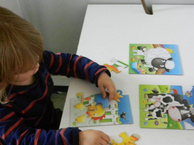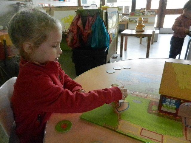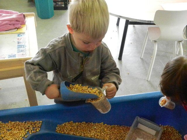 De kippen legden elke dag vele eitjes. We verzamelden ze allemaal. We zochten uit of er evenveel eitjes of kleuters waren. Soms waren er evenveel, soms teweinig en soms teveel eitjes. Zo leerden we spelenderwijs de begrippen evenveel, teveel en teweinig kennen.