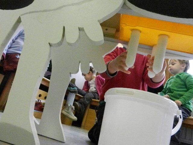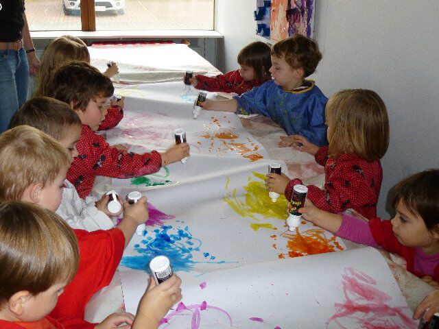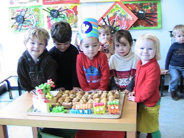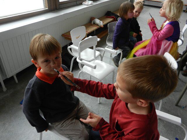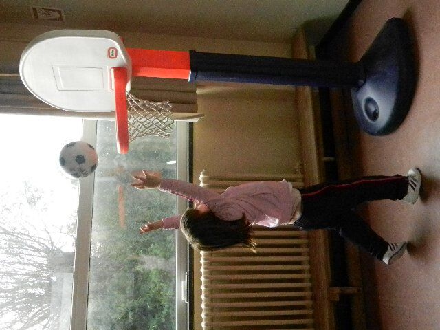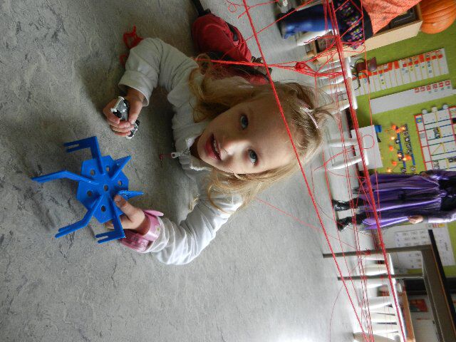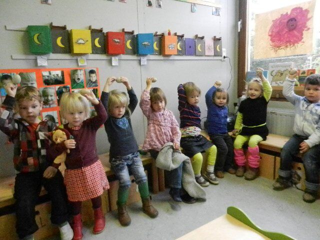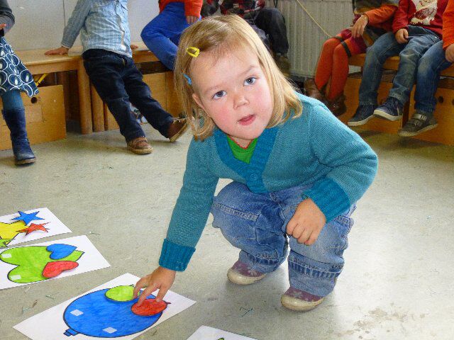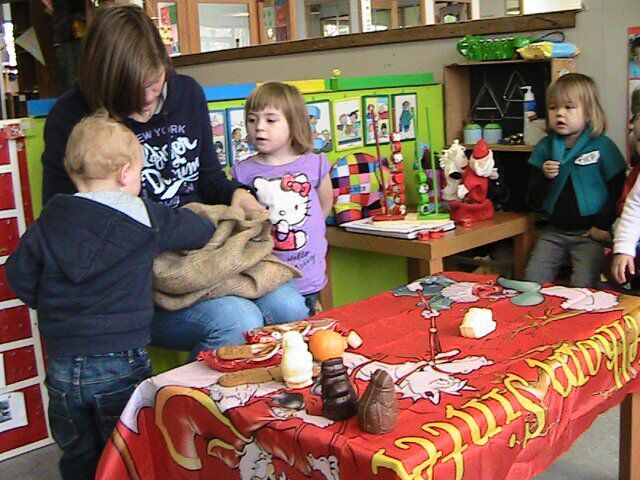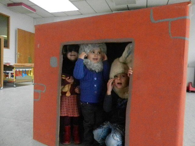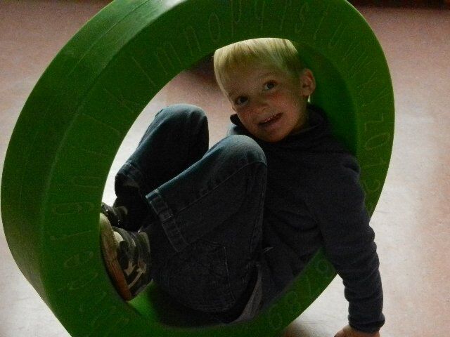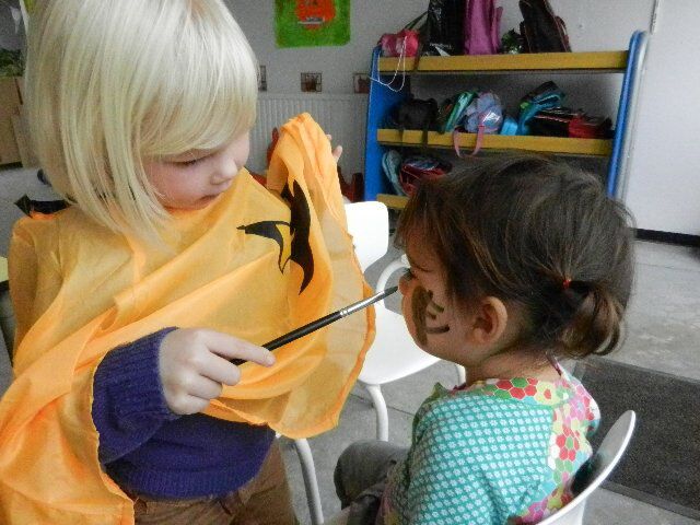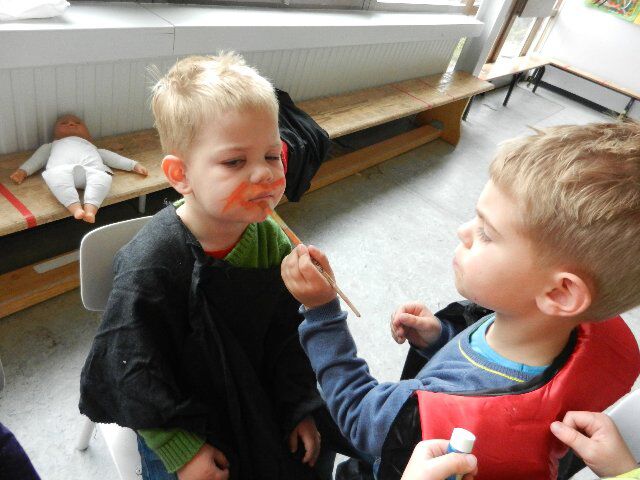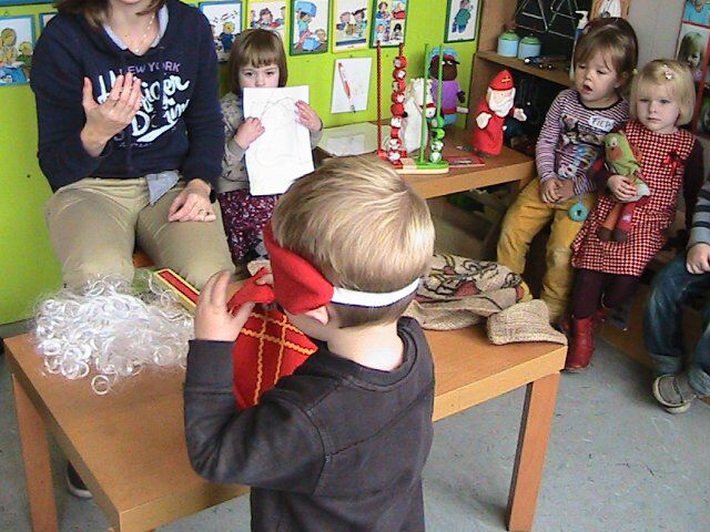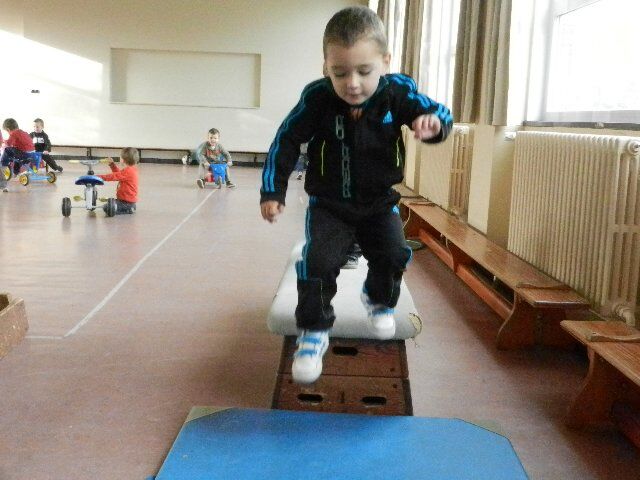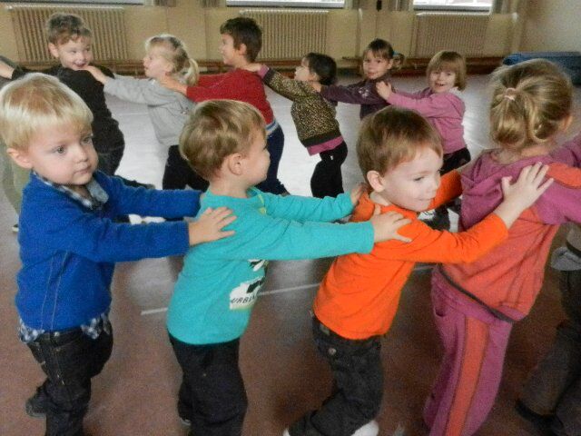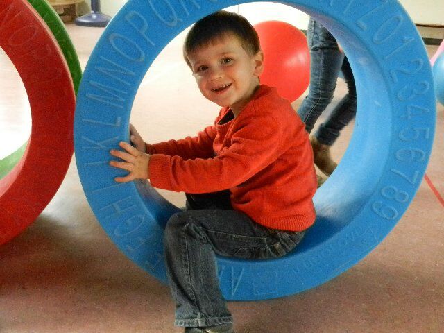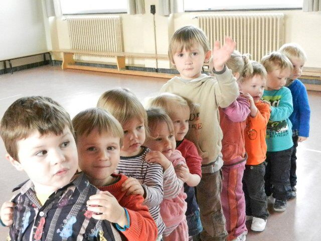 Ook deze keer vertrokken we weer met een bus enthousiaste kleuters naar de turnzaal. Zoals gewoonlijk gingen we van start met een paar kleuterdansjes. Nadien konden de kleuters zich uitleven in de verschillende werkposten. (trampoline, de brug, grote wielen, klossen, fietsen, basket,...)