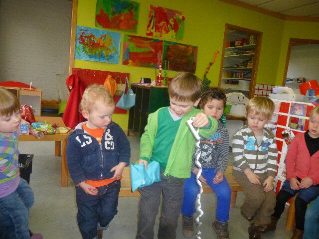 De spanning voor de pakjes hangde al gans de week in de lucht. Eindelijk was het zover en konden we samen gezellig rond de boom kerstfeest vieren. we sloten af met lekkere hapjes gemaakt door de oudste kleuters.