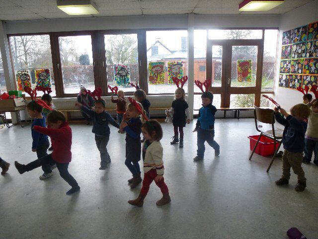 Verkleed als rendieren speelden we een leuk bewegingsspel bij juf Lisa.