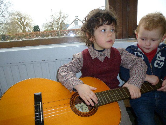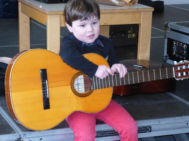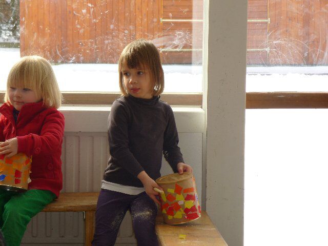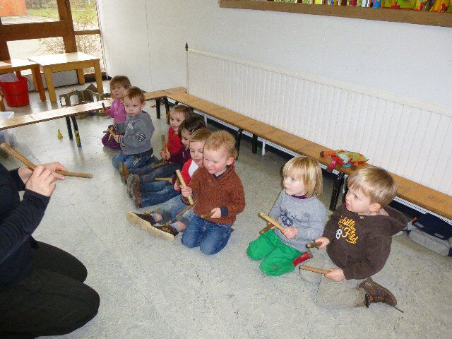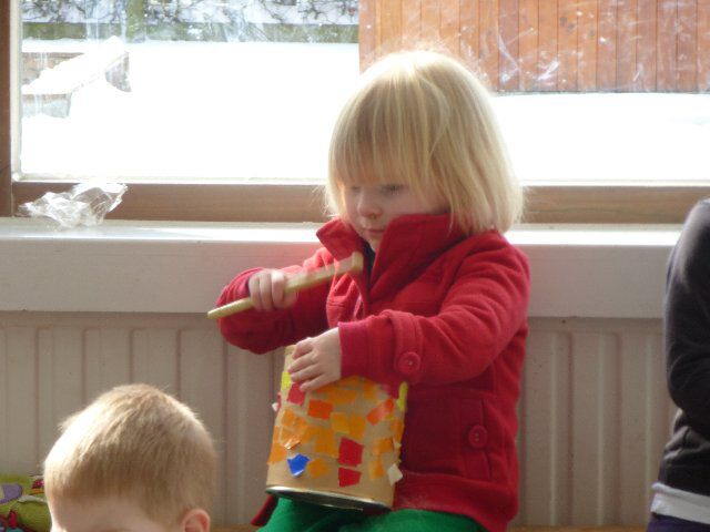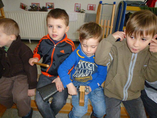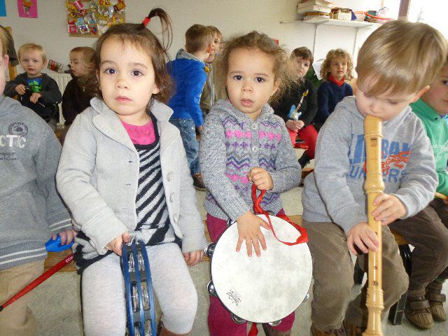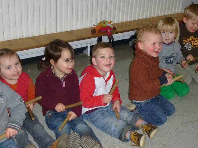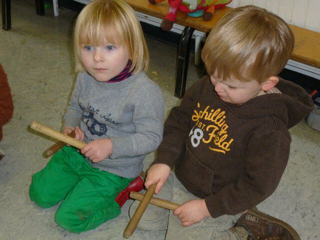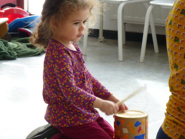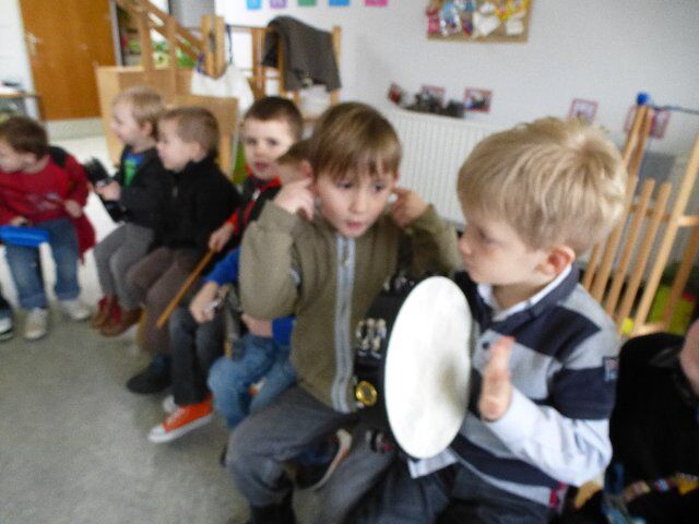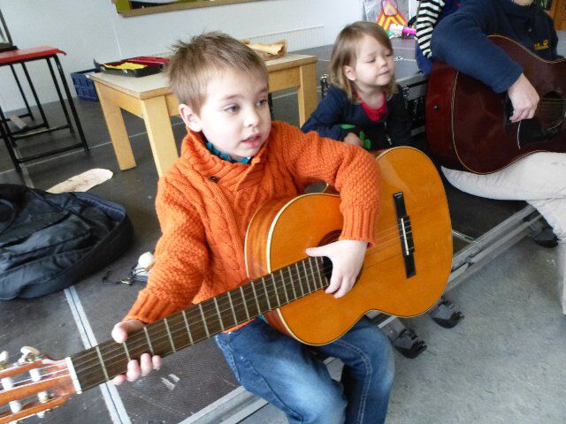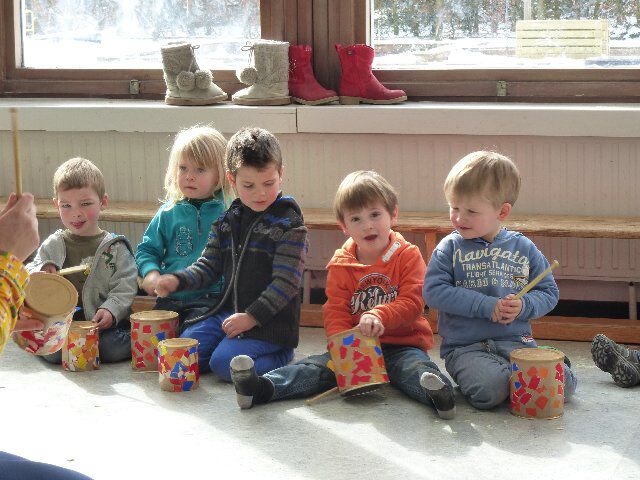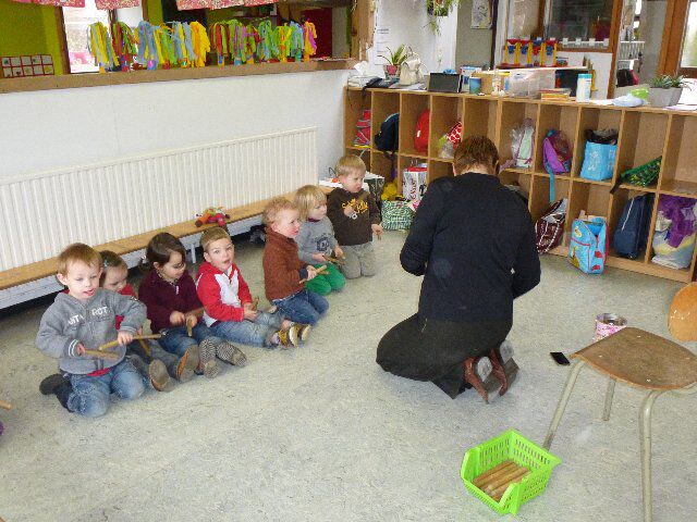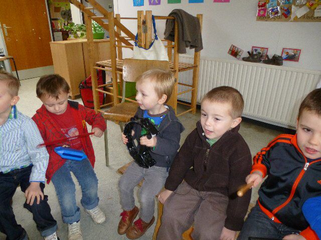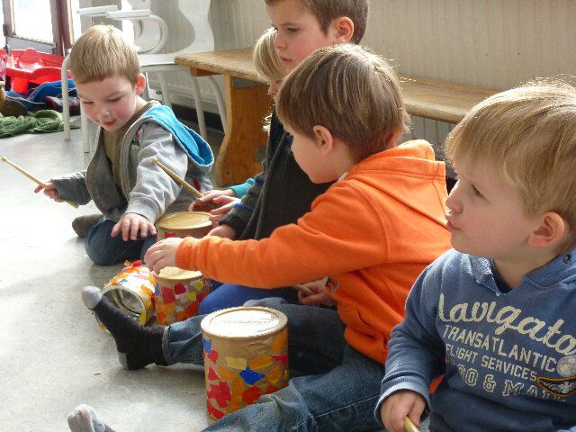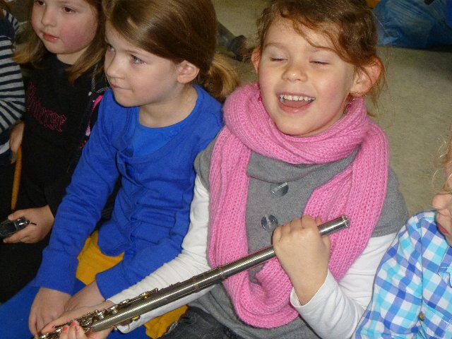 Tijdens ons thema 'rommelorkest' kwam de mama van Fiep echte instrumenten voorstellen.