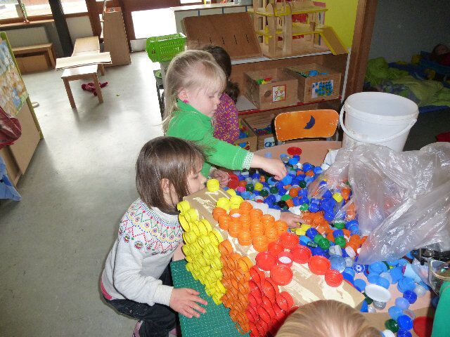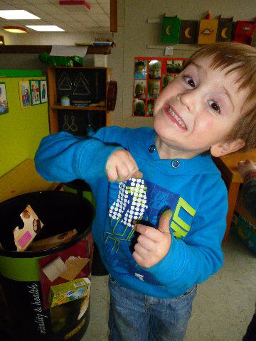 De kleuters stalden met trots hun afval uit! En nu sorteren maar!