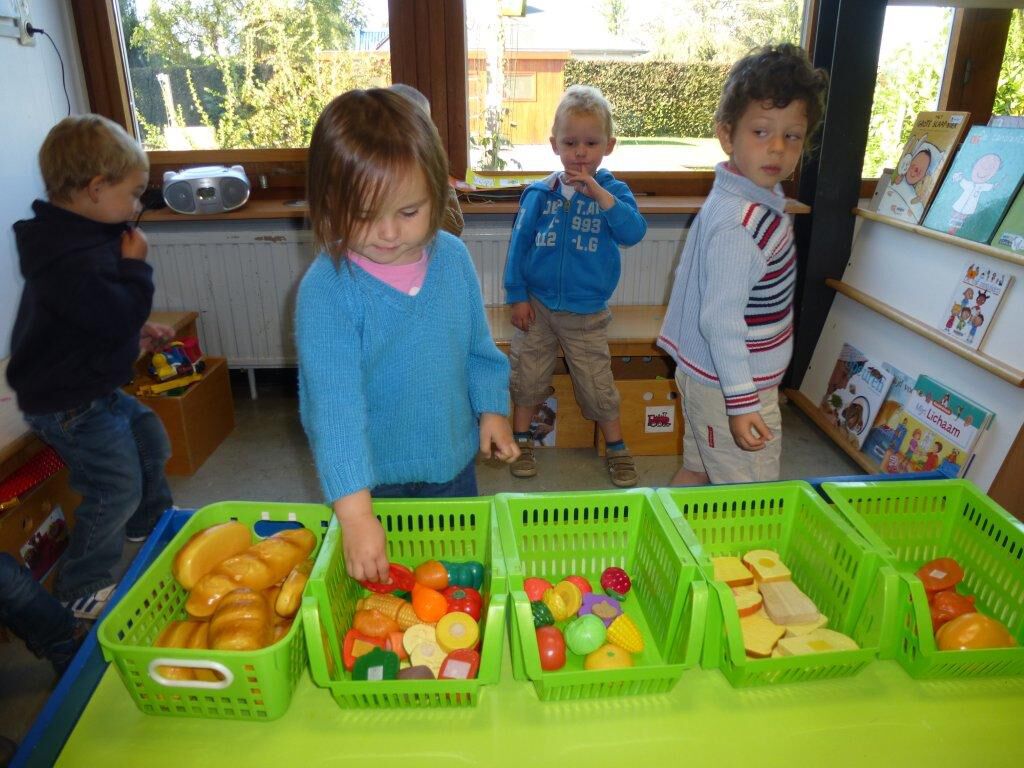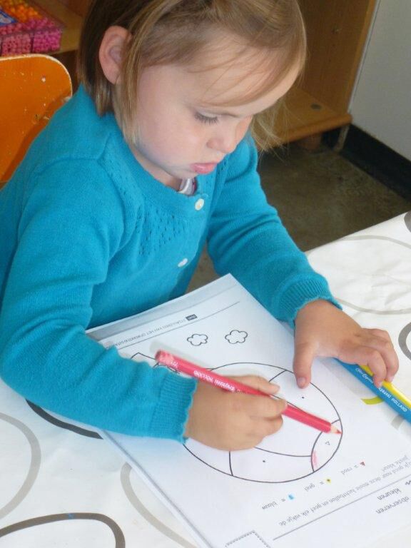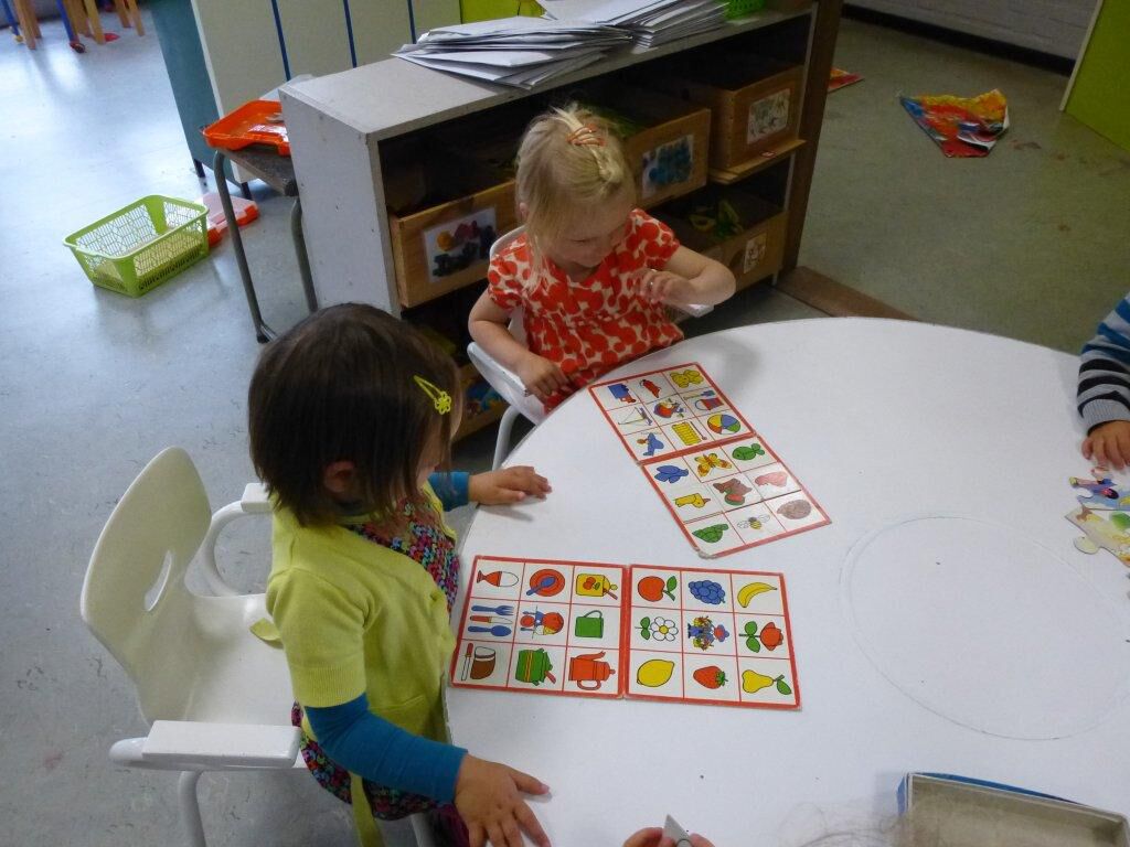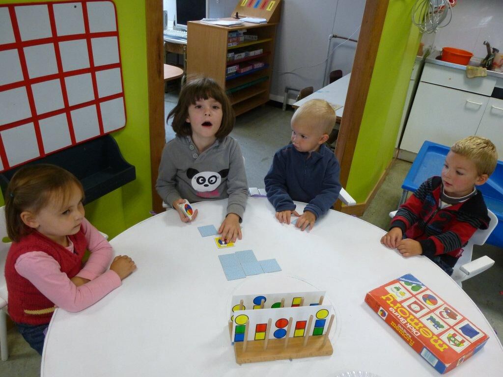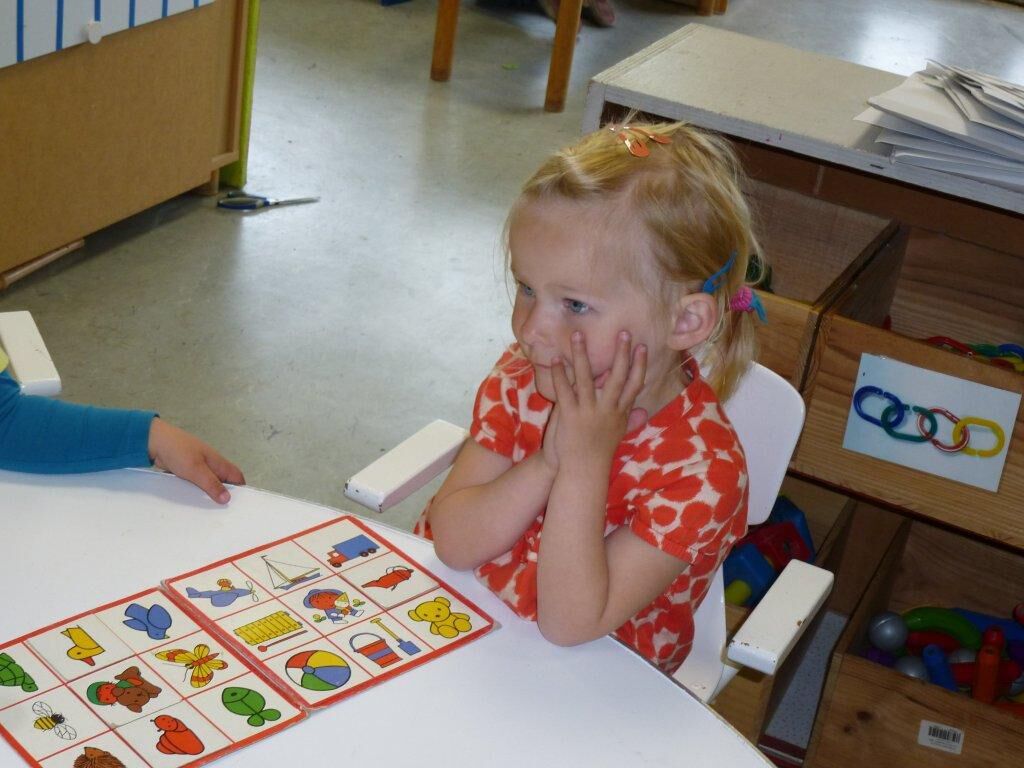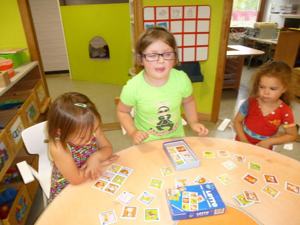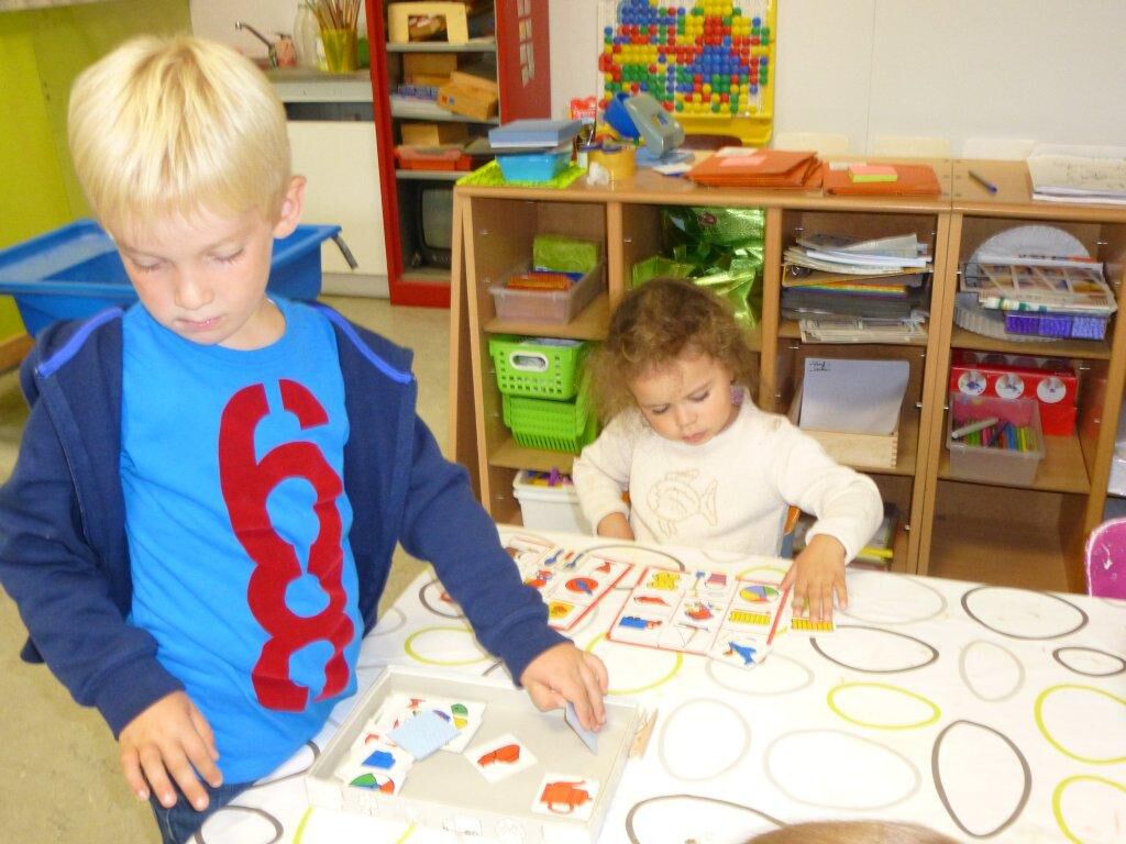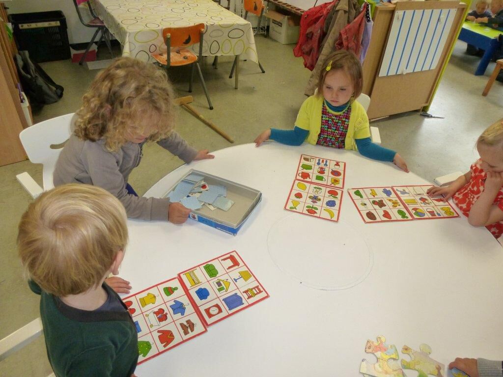 Elke vrijdag spelen we gezelschapsspelletjes. De oudste kleuters begeleiden de jongsten.