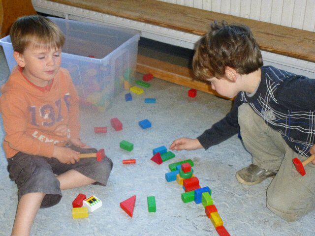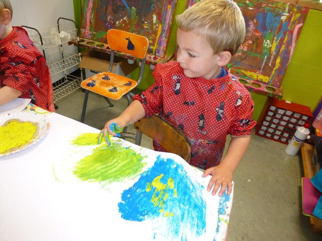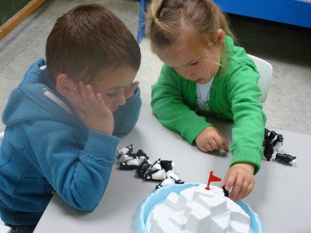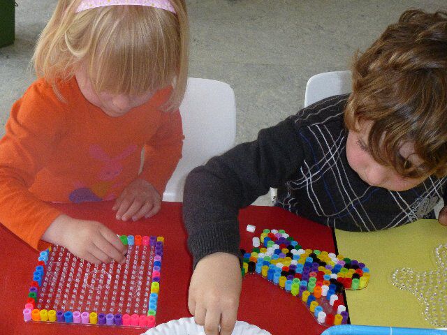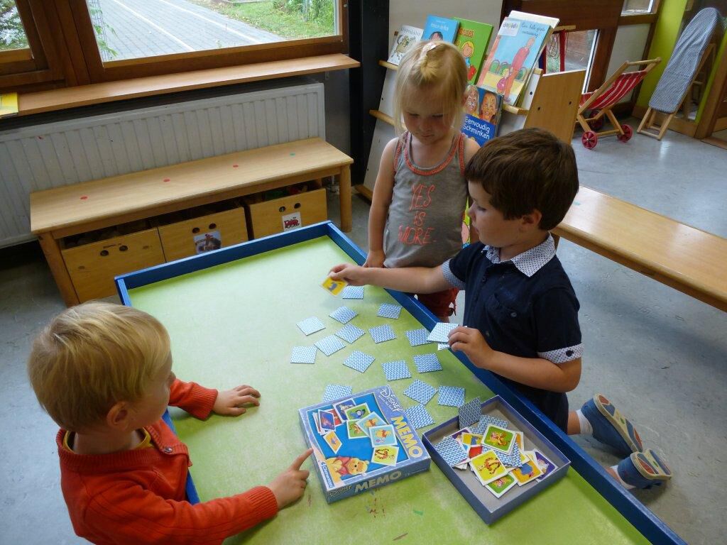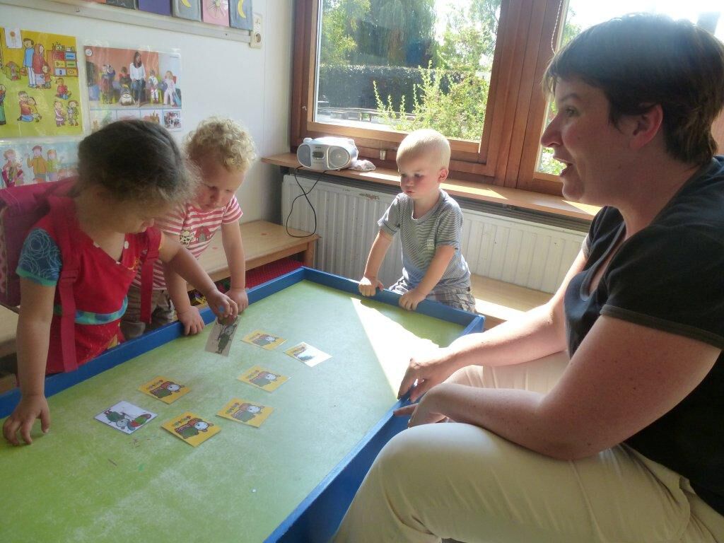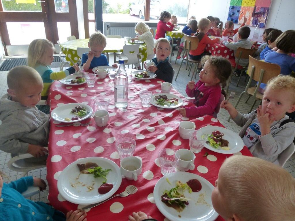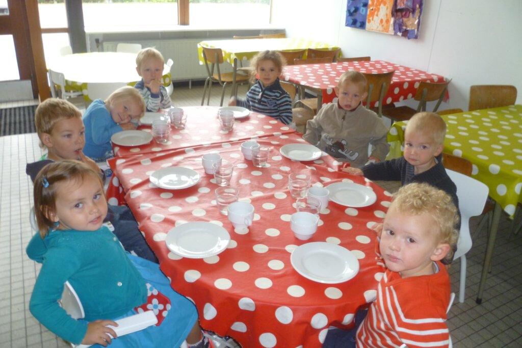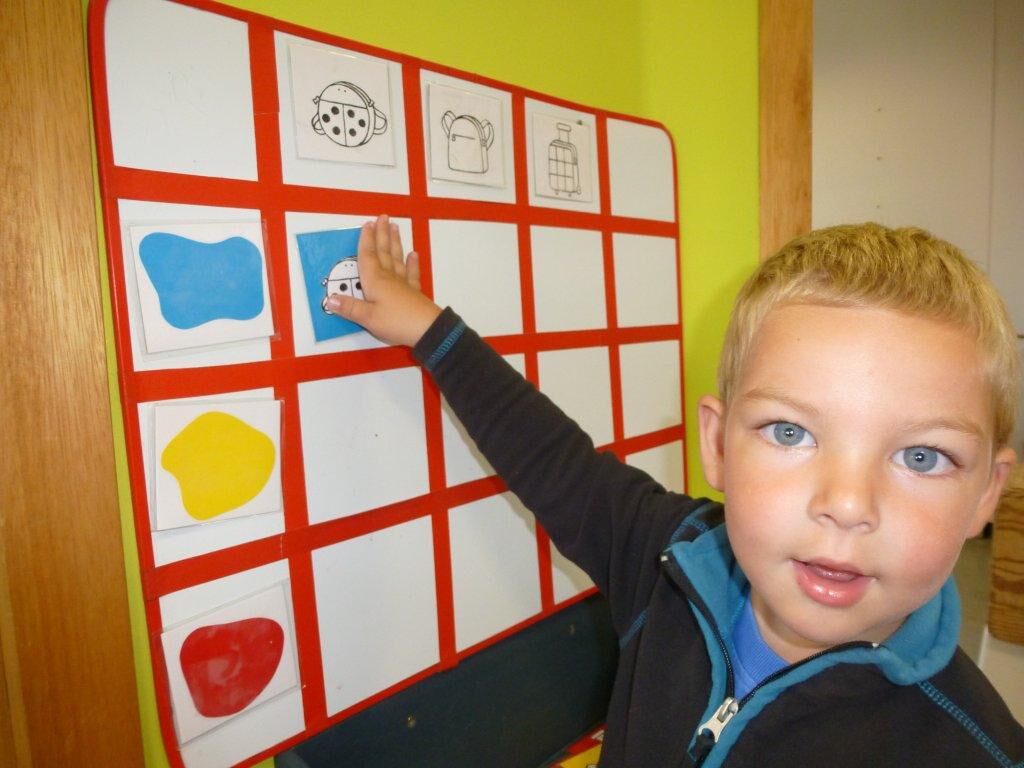 Elke vrijdag spelen we gezelschapsspelletjes. De oudste kleuters begeleiden de jongsten.