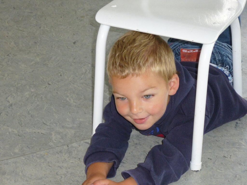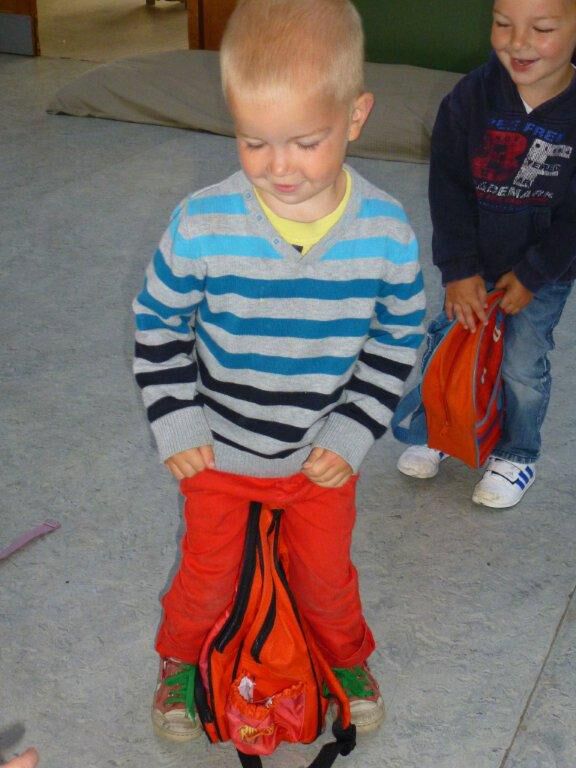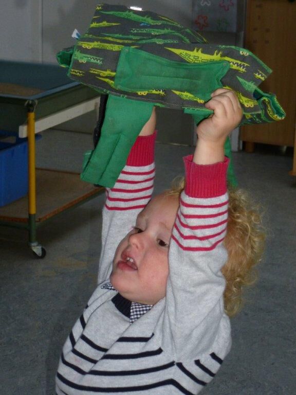 Spelletjes met de boekentas. We ontdekken de begrippen op, onder, boven, naast, tussen, ...