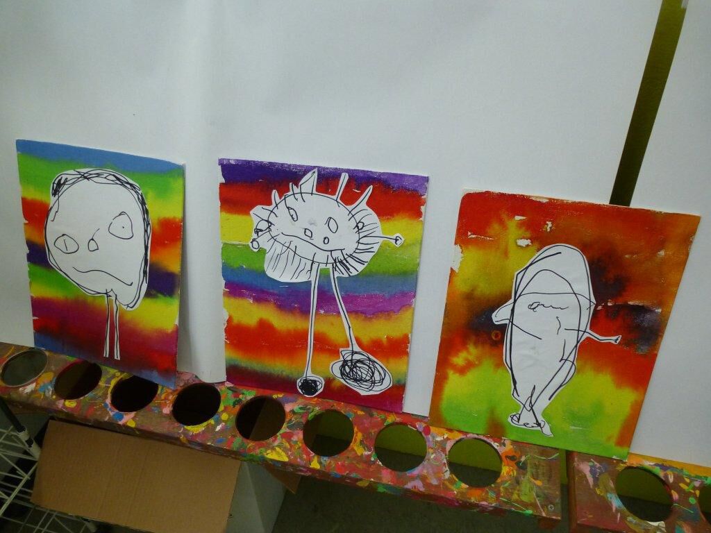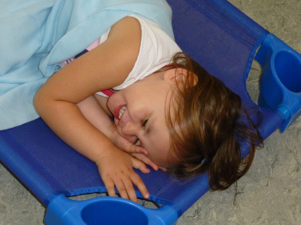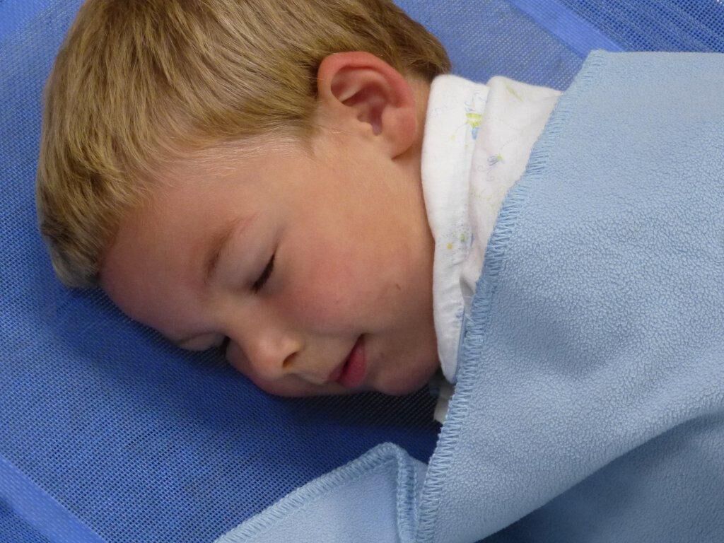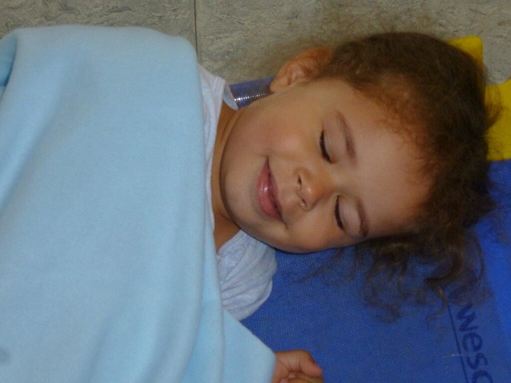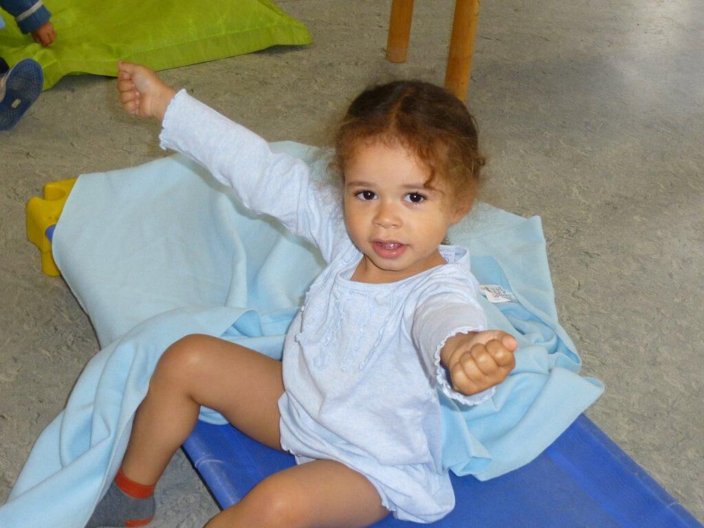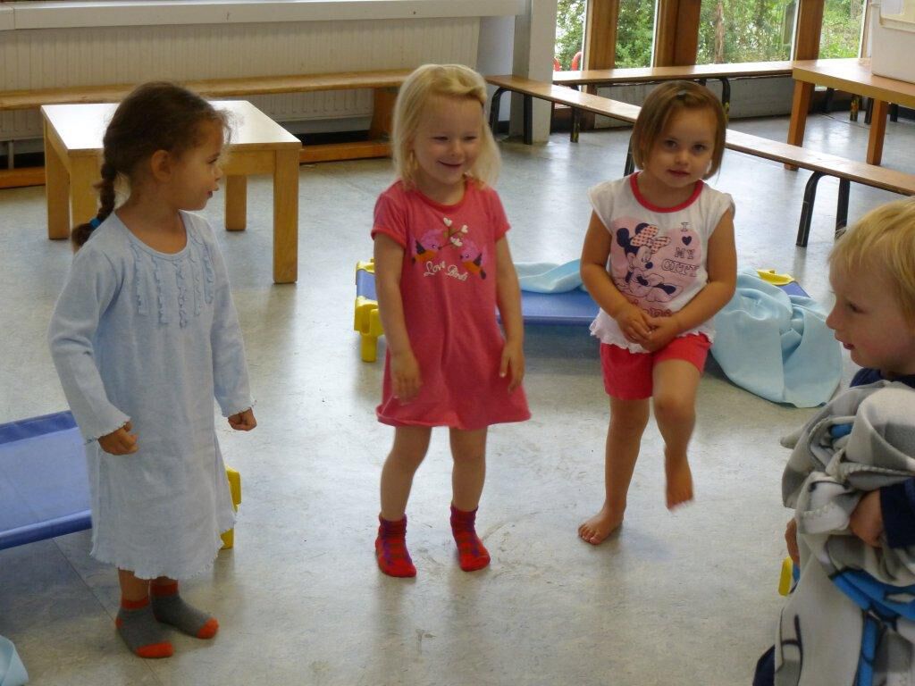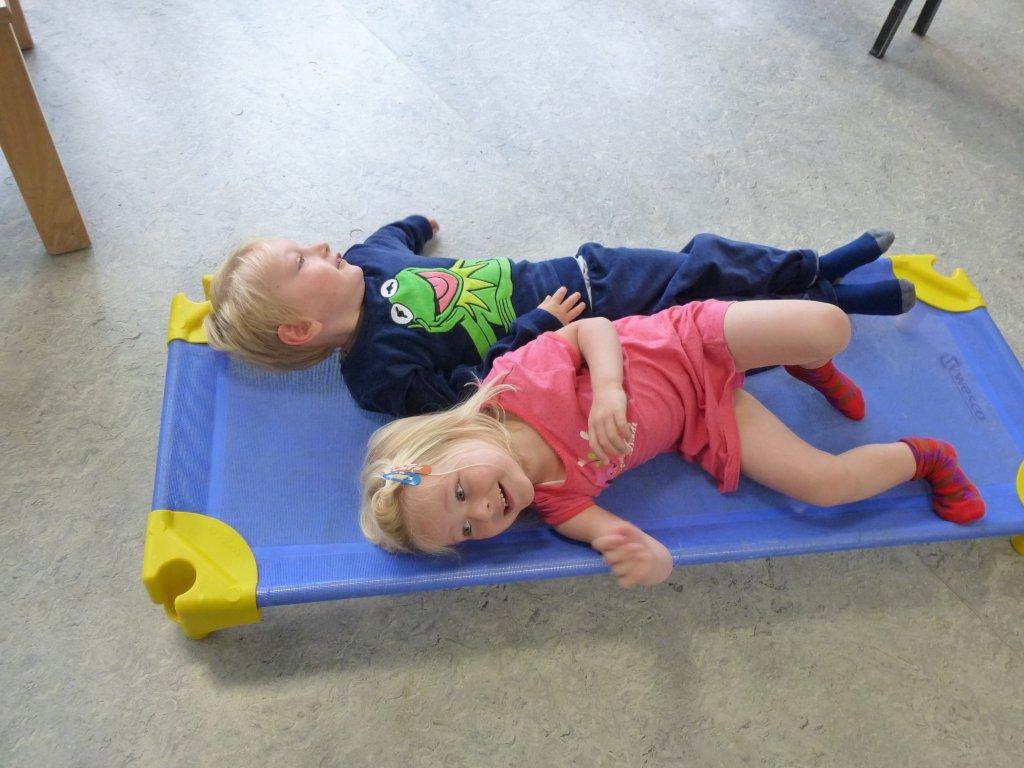We trekken allemaal onze pyama aan om in de zaal het slaapritueel uit te beelden. We kregen telkens een andere opdracht. (op een bed zitten, op de rug liggen, op de buik liggen, per twee op een bed,......
