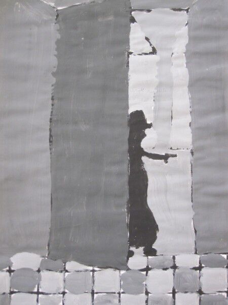 Schilder een detective vanuit een donkere kamer in de deuropening...