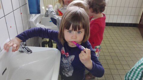 Namiddag was het tijd voor onze wekelijkse tandenpoetsbeurt in de klas. We eten eerst smakelijk onze koekjes op en daarna nemen we onze tandenborstel en poetsen, poetsen, poetsen tot onze tandjes weer mooi schitteren!