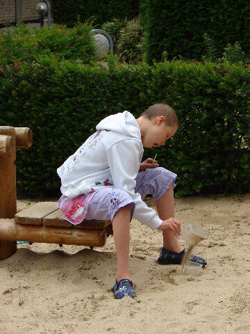 Zaterdag is ons Elke op oncokamp vertrokken. Het was allemaal een beetje verwarrend voor haar. We reden naar Leuven en van daaruit vertrokken ze met de bus naar het kamp in Deinze. Maar toen ze eenmaal op de bus zat, vond ze het wel plezant. We hadden haar verteld dat ze op vakantie mocht met de vriendjes van Leuven. Vrijdag hadden we haar koffer gepakt en ze heeft goed geholpen, haar pyama moest mee en haar knuffels en dvd's, ... Toen we haar koffer gepakt hadden, begon ze er plezier in te krijgen dat ze op vakantie ging, ze ging slapen en eten en spelen in de speeltuin, ... ze vertelde volop wat ze allemaal ging doen. We hebben al iedere dag gebeld en alles gaat prima. Ze slaapt goed, ze is goedgezind, want het was een beetje twijfelachtig of haar humeur zou meevallen, want met de cortisone medicatie is ze thuis altijd veel heviger. Maar alles verloopt goed. Gisteren middag had ze wel niet meegedaan met de wandeling want ze was toch wel wat moe (waarschijnlijk van de chemo en ook al van het veel spelen, ...). Op de site (www.vakantiekamp.be) staan al leuke foto's. Ons Elke zit in groep 1, deze groep sluit het beste aan bij haar interesses. Thuis missen we haar enorm. Het is echt veel te stil thuis. Morgen heeft michel vrij genomen, zodat we toch iets samen kunnen gaan doen (waarschijnlijk winkelen) met ons Nele.