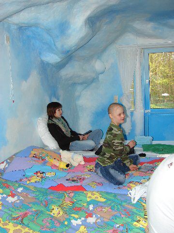 Vorige week zondag zijn we naar het feest voor Robin (vriend Nele) zijn 18de verjaardag geweest. Het was heel gezellig. Ons Elke voelt zich goed en dus kijken we uit naar de midweek Villa Rozerood in de Panne. Wij hebben haar verteld dat we naar het huisje aan de zee gaan, en ze is heel enthousiast, ze is aan het aftellen. Maandag middag vertrekken we, en het verkeer valt mee, we zijn er rond 15u. We worden heel goed ontvangen en we voelen ons meteen op ons gemak. We mogen in de mooie wolken kamers slapen. Maar ze blijft vragen naar ons huisje aan de zee, want ze heeft de zee nog niet gezien en dus blijft ze ernaar vragen. 's Avonds gaan we naar de zee en maken een fijne wandeling over de zeedijk. Nu is het goed, we gaan terug naar ons huisje aan de zee. Dinsdag middag gaan we naar Plopsaland. Want toen we hiernaartoe reden kwamen we al langs plopsaland, en michel zei : 'hier is Plopje zijn huisje' en dus wou ze graag naar het huisje van Plop en ook naar Samson, Piet piraat, ... Ze heeft vooral genoten van de Plop show in het grote theater. We hadden goede plekken en ze vond het geweldig. Af en toe wel eens even de oortjes dicht maar toch had ze er veel plezier in. Ze vond het fijn om overal bekende liedjes te horen en ze klapte vrolijk mee. En al die bekende figuren en het K3 museum, ... Ons Nele is in de Anubis, de snelle routche baan geweest. We hebben allemaal genoten. De bedoeling van villa Rozerood is ook dat de zussen eens extra aandacht krijgen. Dus op woensdag middag was er een kook-activiteit in de Panne voor kinderen voorzien en daar is ons Elke naartoe geweest, met de begeleiding van daar. Wij zijn ondertussen gezellig gaan winkelen in Oostende. Papa heeft de portemonee open mogen houden, maar we hebben niet overdreven hoor. Met ons Elke was het heel goed meegevallen, ze heeft hard gelachen en was heel fier op de lekkere dingen die ze gemaakt had. Ze hadden chocolade fondue gedaan. Dus weer een geslaagde dag, voor iedereen. Omdat ze gezien hadden dat de kinderen (en ons Elke zeker) zo genoten van die chocolade fondue, hadden ze dit ook op donderdag in de villa gedaan, zo hebben wij allemaal nog eens lekker kunnen smullen. In de namiddag zijn we dan nog naar de zee geweest en heeft ze met de schupjes in het zand kunnen spelen, dat hoort er natuurlijk ook bij als we aan de zee zijn. Het weer was telkens wel frisjes, maar met de jas aan en de muts op, viel het goed mee. Vrijdag morgen was het tijd om terug in te pakken en na het middag eten zijn we terug naar huis vertrokken. Ons Elke wou niet graag naar huis, ze heeft altijd even tijd nodig om te wennen en nu was ze het gewend en moesten we weer terug vertrekken. Zaterdag zijn we naar de wekelijkse markt geweest. En zondag hebben we met vrienden barbecue thuis gedaan, op zijn nieuwe barbecue/buiten keuken. Dit nog voor papa zijn verjaardag, want dit hadden we nog niet kunnen vieren. Nu is ons Nele gaan wandelen met ons Elke en ze zijn meteen een ijsje gaan eten. Verder gaat alles rustig zijn gangetje en donderdag staat er weer een dagje Leuven op de dagzaal voor chemo gepland.
