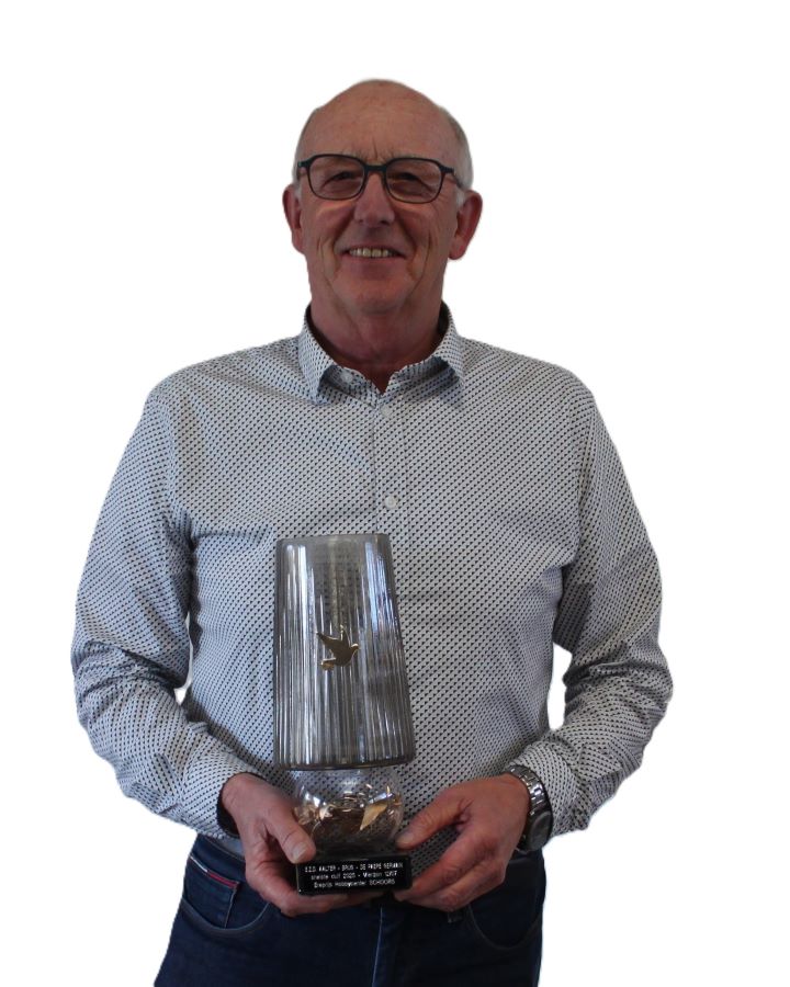Te winnen met de 1ste en de 2de afgegeven duif op de lokale dubbeling van alle provinciale en nationale zware halve fond vluchten vanaf 17/05 tot en met Argenton van 19/07.