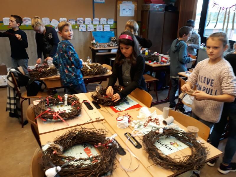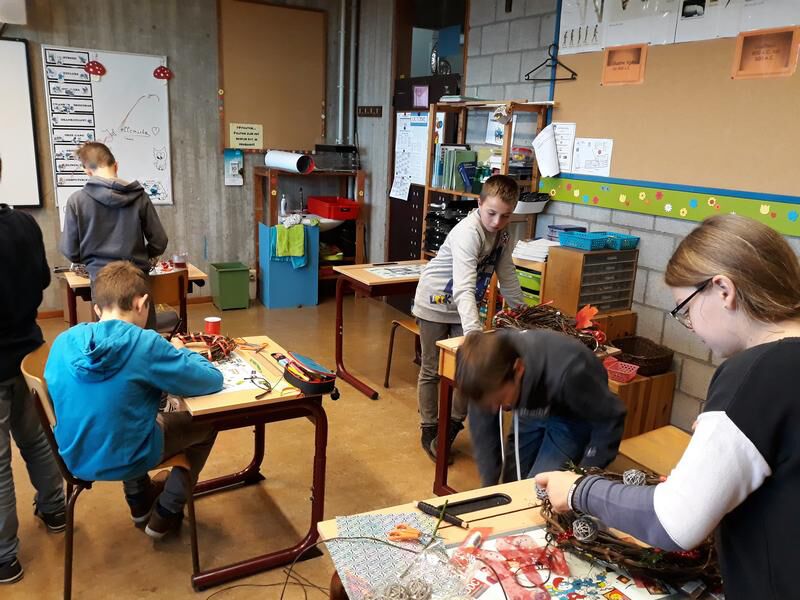 We sloten de week af met een muzo-les. We versierden onze hoppekransen die we gemaakt hadden op plattelandsklassen. Sommige deden dat met herfstdecoratie, anderen waren al eerder in kerststemming en haalden zelf de sneeuw al boven....