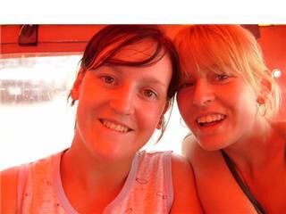 dan was het dessertenbuffet, vers fruit: appel, banaan, aardbei en watermeloen, eventueel met yoghurt. dan merengues van de fransen bakker en bananencake, ook nog pannenkoeken met stukjes appel, superzalig en damçn nog nen dessert van ons moe, periti beurre met flan, de max, iedereen zat echt dempig gegeten, we zijn niet meer gewend van zoveel te eten aja, bij iedereen ging er al een knopje van de broek open, pff amai wat was dat, super goed, dan hebben den diezen en ik den mega afwas gedaan. aja kheb zelfs een pint gekregen van mijn moe.. super aja na den afwas moest iedereen efkes bekomen, ik en den diezen hebben buiten gezeten bij kaarslicht en een goei pint. de rest zat in de zetel dempig te wezen, echt mijnen buik stond zo vet als iet, pfffff. twas 11 uur voor we het wisten, maja den diezen moest nog naar huis he en der was geen bus meer, wel nog taxi maja, ons vroumens zei ge moogt blijven slapen en ze heeft dan gebeld naar haar dçzus, de ma van den diezen dat hij hier blijft maffen. den diezen heeft dan met twee knappe grieten op de kamer geslapen he, we hebben nog platgelegen van het lachen met de trein kat, ge moet er maar eens naar vragen als we terug zijn, niet te doen..... en zo was de woensdag weer voorbij, wat een avond, hihi, zo dempig gegeten, en dan konden we nimeer naar de wc want er was geen water meer dus iedereen met volle maag gaan slapen, pfffff..... tot morgen els xxxxx
