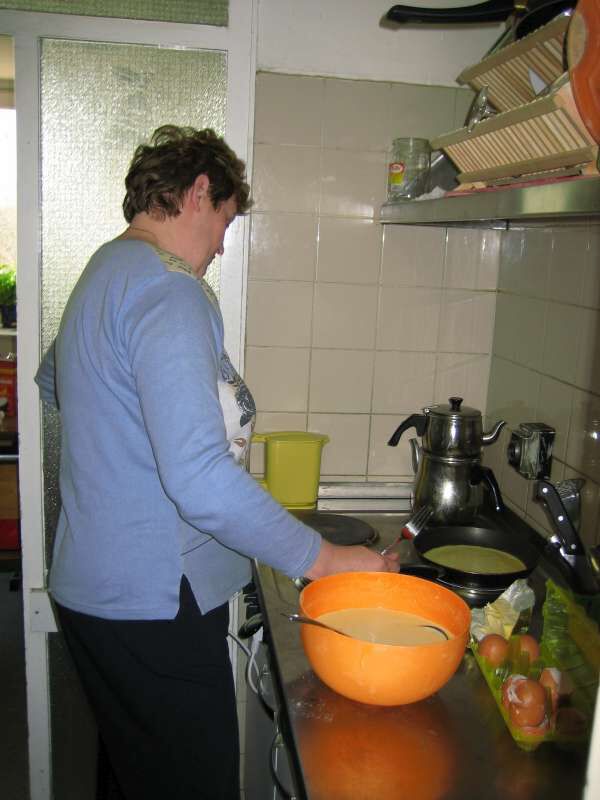 Het lot van de Belgische bezoekers: Belgisch eten klaarmaken.