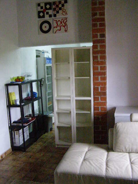 Deze opening moet dicht . We gaan er een kast zetten en een schuifdeur. De bedoeling is dat de deur achter de kast schuift'. De kast hebben we al, de schuifdeur nog niet,maar dat zal voor volgende week zijn.