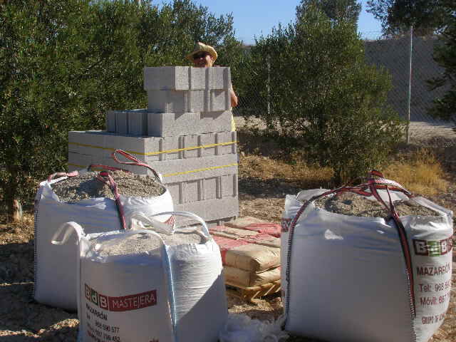 2 zakken zand en kiezel, 90 blokken beton,1 zak lommelzand , maar dan Spaanse Lommelzand en 12 zakken cement...
