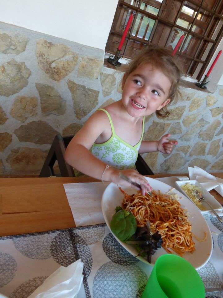 En er moet ook geeten worden... Dora-Lita wou spaghetti...hmmm... lekker met de handjes..