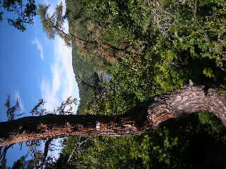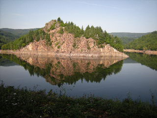 De dag daarna ging het bergafwaarts door het dal van de Chassezac, en gelukkig maar, want het was nog warmer dan de dag ervoor en bij aankomst omstreeks 18u op de camping in Les Vans was het nog altijd 32°C. Wij hadden geen ontbijt voorzien de volgende dag, en hadden dus snel alles opgeruimd zodat wij al om 9u van de camping weg waren. Maar in het dorp zaten wij dan op een terrasje met het gekochte brood en koffiekoeken, en namen een koffie en lazen de krant; een echt vakantiegevoel dat maakte dat wij pas om 11u vertrokken. Maar de route beloofde makkelijk te worden. Dit was echter buiten de hitte gerekend, die dag werd het heel heet en kwamen wij na elke beklimming met een vuurrood koppeke boven op de helling. Vero dacht dat haar bloed kookte, en ik dacht dat ik uit haar neus een rode stoom zag komen, dus dat kon wel waar zijn (of hallucineerde ik ook door de hitte?). Wij zaten nog volop in de "bergen" en vonden niet zoveel gelegenheden om water bij te tanken, behalve dan een eenzame boer in een bergdorp die er 2 kussen van Vero voor in de plaats wou. Wij dachten die dag 70 km te fietsen, het werden er uiteindelijk meer dan 90...