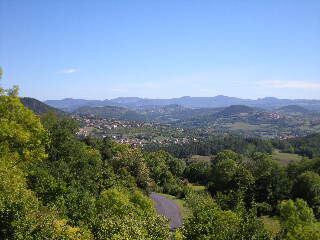 Het routeboekje zei ons dat wij na Le Puy het Centraal Massief in zouden fietsen, en dat wij veel moesten klimmen, en dat hebben wij geweten. Aan een gemiddelde van 12 km/u kropen wij de hellingen op, maar wij kregen er mooie vergezichten voor terug. Het was ook weer warm, en wij hadden lang moeten zoeken naar het begin van de oude spoorweg, de voie verte om Le Puy uit te geraken. Na het klimmen begonnen wij aan een kilometerslange afdaling en kwamen zo in Pradelles, waar wij in een gîte sliepen waar ooit Robert Louis Stevenson (op weg door de Cevennen met een ezel in de 18e eeuw) het middagmaal genoten had.