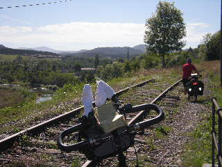 Bij vertrek uit Girona waren de weergoden ons iets gunstiger gezind; er had 's nachts een onweer gewoed en de temperatuur was gezakt tot een aangename 18º C, heerlijk fietsweer. Toch hebben wij het gewicht herverdeeld en Jo vervoert nu wat meer kilo's dan in Frankrijk, omdat Vero van de hitte last had bij het klimmen en het de dagen daarna ook telkens weer in de twintig graden werd. Op onze eerste beklimming van Anglès naar Sant Hilari (25 km) staken wij zelfs een mountainbiker voorbij, en dat met al onze kilo's en zéro komma zéro zéro zéro zéro zéro zéro zéro zéro zéro zéro zéro zéro zéro zéro zéro zéro zéro... mg glenbuterol in ons bloed!
