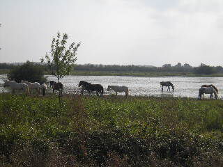 Vorige zaterdag kwamen wij dan voorbij Béziers aan de Middellandse Zee, en hoewel de route niet vlak langs de kust liep, deden wij een ommetje om de zee te zien. Iets voorbij Béziers langs het Canal du Midi stonden wij dan op een camping in Colombiers, waar de TGV vlak achter onze tent raasde, maar toch sliepen wij als roosjes.