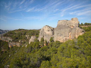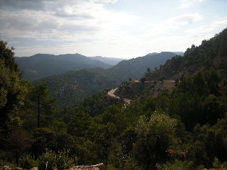 De volgende dag, na de lunch in Manresa, klommen wij gedurende 17 km met aan onze linkerkant een prachtig zicht op de rotsformatie van Montserrat. Die nacht sliepen wij in een ietwat verouderd hotel in Igualada, waar het "ontbijt" in de overnachtingsprijs inbegrepen was. Wij maken ons al lang geen illusies meer over het Spaanse ontbijt, hoor, meestal is het gewoon een kop koffie met 1 croissant, alleszins te weinig om als fietser de bergen op te geraken. In het bergdorp Herbés kregen wij koffie met madeleinen als ontbijt, en antwoordden wij met een gretige "Sí" als hij vroeg of wij er meer wouden. Maar zelfs volgepropt met madeleinen is een klim van 8% niet van de poes. Die dag besloten wij dan ook een stukje van de route met de bus te doen, maar met een goede reden; de weg tussen La Mata en Cantavieja is namelijk in zo'n slechte staat dat het echt moeilijk fietsen zou zijn, om niet te spreken van mogelijke schade aan het materiaal. De bus reed zelf maar 35 km/u, en alles schudde en rammelde en wij als enige passagiers kregen zo een gratis massage.