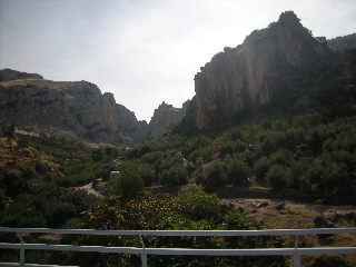 Op onze weg naar hier ontdekten wij een leuk Andalusisch stadje, Lucena, waar wij in een viersterrenhotel in een oud gerenoveerd klooster geslapen hebben en zo van een uitgebreid ontbijtbuffet hebben genoten. In Campillos waren wij op het moment dat de processie uitging (20u was ons gezegd, maar zij waren vertrokken om 20u45; Spanje, hé ), en wij zagen alle dorpelingen feestelijk uitgedost langs de straat flaneren. Onze route ging ook nog langs een heel slechte weg bezaaid met grote keien en grind; het ging dan wel bergaf, maar wij moesten constant remmen en uitwijken voor keien en putten en tegenliggers (jaja, met de wagen reden ze er ook nog over). Resultaat was dat onze fietsen en bagage daarna terug helemaal vuil en bestoft waren, nadat Jo ze de vorige dag op de camping had gekuist. Maar het was die avond dat wij in Lucena gingen slapen, en niemand gaf ons een opmerking dat wij daar zo bevuild toekwamen.