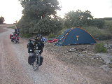 Vraag eender welke Spanjaard of hij gek genoeg is om meer dan 12 kg op de fiets mee te nemen om te kamperen, en je krijgt als antwoord "Ik niet, maar Jo wel !!" Wij zijn nu in Cazorla, en kunnen na 2 weken in Spanje eindelijk nog eens kamperen op een camping uitgebaat door Nederlanders. Bij alle andere pogingen bestond de camping niet meer of stonden wij voor een gesloten camping, want -zo zei een ober ons- het is al te koud... Wij moeten eerlijk toegeven dat het inderdaad kouder is dan in Frankrijk, het is hier maar achter in de 20 graden Celsius. 1 keer hebben wij het anders opgelost en hebben onze tent opgezet in het veld, hoewel we denken dat wildkamperen niet meer mag in Spanje. Wij hadden toen meer dan 100 km gereden en moesten er 24 extra bijdoen om een slaapgelegenheid te vinden, en dat vonden wij er net over, dus zochten wij een klein weggetje en reden een 500m het veld in en vonden daar een goed plekje (foto).