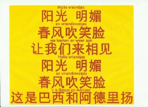 Lange jaren heb ik in Huissen gewoond en zo vlak na de Tweede Wereldoorlog stond bij goed weer voor ons bedrijf een Chinees die uitsluitend pinda' s verkocht en voor een stuiver had je al zo'n zak vol van die lekkere Chinese pinda's. Lange tijd waren die verkopers overal te vinden waar een beetje volk langs kwam, eveneens op zondag op de voetbalvelden. Niet iedereen vond dit goed en vaak werden ze door een strenge diender of zakenman weggejaagd. Stellen kun je dat die eerste Chinese handelslui de oprichterrs van de straathandel en de grondleggers van de Chinese wereldhandel zijn. We spreken hier in Nederland diverse talen en Engels lijkt in de grote steden al ingeburgerd te wezen als de voertaal van ons land. Chinees spreken valt mee, maar schrijven is echt een kunst. Geinig vond ik het om deze keer ook wat Chinese taalschat op dit blog los te laten en ook een paar moeilijke zettingen van Nederlandse afkortingen e.d.