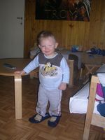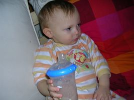 Ik ben vandaag 22 maanden oud se... wat gaat de tijd toch snel hé! En ik ben echt een flink ventje aan't worde, al zeg ik het zelf Heb eigenlijk een beetje groot nieuws ook, ik ben gistere voor de eerste keer op het potje geweest Het was wel lache voor mama, ik zei dat ik pipi moest doen en mama begon natuurlijk weer over 'op het potje gaan'. Alé heb haar dan na zoveel tijd eindelijk haar zin maar eens gegeven... En jaja ben flink op het potje gaan zitten, tot mama richting keuken ging Dan kwam ik ook van het potje en ja ik was natuurlijk nog pipi aan't doen, dat had ik even nog ni door Ons mama maar lache en ik verwonderd naar men piemeltje kijken, tja ni aan te doen hé ons mama kon dweilen Met men eten ben ik ook ne flinke vent hoor... ik doe ni liever dan lekker eten En tegenwoordig mag ik van mama zelfs aan men eigen tafeltje zitten en net als de grote mensen met mes en vork eten. En dat lukt me al aardig hoor, je moet hier maar is zien. Flink hé! Jaja kleine Yuni wordt een groot ventje Alé ik ga een lekker dutje doen nu want ik viel daarnet al in't slaap toen ik in het karretje zat in de winkel. Heb weer zo hard in de tuin van Marina zitte ravotte dat ik echt bekaf was. Ik kon me echt ni meer wakker houden, ik had in de winkel van Marina een vleesje gekregen, want als we daar kome legge die me altijd in de watte... maar ik moest het snel opeten hoor, kon echt men oogjes ni meer openhouden... en die vrouwe maar gibbere met mij. Dus nu ga ik lekker naar dromenland zodat ik morgen weer in grand form ben hihi Slaap wel allemaal x