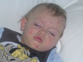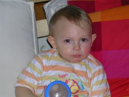 Zaterdag 29 maart voor de tweede keer waterpokke Mama had het s'morgens al in het snuitje, en eens namiddag was ze er wel zeker van En ja hoor het kan, als je rond 1 jaar een kinderziekte krijgt of ze breek niet voldoende door kan je het dus een tweede keer krijgen De vorige keer had ik ze helemaal niet hard, een paar pukkeltjes maar... En dat heb ik nu voor se... mama moest me de eerste dagen héél warm kleden zodat ze deze keer goed zouden doorkomen En of dat gelukt is, je moet hier maar eens kijken, zie er lief uit. Vandaag had ik het een beetje lastig, het zal alweer aan't genezen zijn want het begint te kriebelen En dat is niet zo echt leuk, kan ik zo even beginnen zagen, klagen en jammeren... je kent dat wel Ben dan ook blij dat mama me insmeert met men zalfje, dan kriebelt het een beetje minder alleszins En zo genees ik ook snel en dan ben ik er voorgoed vanaf deze keer!