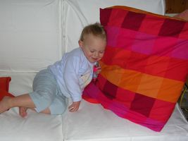 Zondag was het dan weer feest!! Vorige week met men verjaardag hadden meter Allessandra en peter Gio nog examens, dus wij hadden afgesproken dit weekend een feestje te houden. En ja hoor ook dat was weer reuzefijn. Het was weer supergoed weer buiten en dat is altijd veel plezanter, zo konden we gezellig buiten in de tuin zitten. Ons mama had me eerst nog even in men bedje gelegd, en toen ons vake, moeke, mémé en pépé er waren is Johan me uit men bedje komen halen. Maar het duurde even voor ik wakker was en besefte dat er cadeau'tjes op mij aan't wachten waren om opengemaakt te worden. Maar eens ik goed wakker was heb ik genoten van men feestjes. Ik heb superleuke cadeau'tjes gekregen, ik ben de laatste tijd echt gek van auto's en heb dan ook een paar nieuwe auto's gekregen en 2 matten met autoparkoers op... daar ga ik me mee amuseren! Verder heb ik nieuwe zomerkleren gekregen, superchique en een ganse reeks boxershorts... mja ja dat hoort bij groot worden hé de overgang van babyhemdjes naar boxershorts voor de echte grote rakkers en ikke fier... Maar men oog viel vooral op men speelgoed dat ik gekregen had hoor, daar ben ik gelijk mee beginnen spelen, dus heb mijn plezier er al aan beleefd. Dan was het lekkere taart eten, en ja kaarsjes uitblazen was er weer niet bij want deze keer was de wind me voor Taart eten kan ik ondertussen ook al flink alleen maar het was vooral slagroom eten... mmmm lekker hé! Na al dat lekkers was het nog een beetje spelen en ons amuseren met wat confetti, dat vond ik ook weer superfijn! Thanks allemaal... ik heb genoten van men feestje en voldaan men bedje ingekropen x