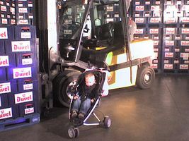 "Er is leven in de brouwerij!"... en dat hebben wij vandaag kunnen zien ook Het was vandaag 'Open brouwerijendag', en wij hebben ons eens laten onderdompelen in het Duvel-universum. Duvel is toch wel één van de meest gerespecteerde Belgische bieren. En het is dan ook het lievelingsbier van mijn papa. Een reden te meer om eens te gaan kijken hoe dat lekkere biertje eigenlijk wordt gebrouwen. En of het indrukwekkend was! Wisten jullie dat het brouwproces 90 dagen duurt, das lang hé... we hebben het allemaal kunnen zien. De eerste 29 dagen van het brouwproces konden we volgen via een mooi opgezet bezoekerscentrum. Van brouwen tot hoogdgisting, koeling en lancering en hop naar de filtering. Mama vond het best fijn dit eens te weten te komen, voor mij was dit minder interessant want ik kon alleen maar kijken. Eens buiten konden de grote mensen eens proeven van een niet-gefilterde duvel, ons mama vond het wel lekker ook al was den duvel dan nog helemaal ni klaar... ik heb er nog het raden naar, maar als ik groot en sterk ben zal ik het beslist eens proeven Dan begon de pret voor mij, ik mocht eindelijk uit mijn buggie want we moesten de trappen op en mochten van dichtbij de bottelarij bekijken. Dat vond ik dan weer geweldig. Ik was er als de kippen bij om tussen alle mensen te kruipen en op de eerste rij alles van kortbij te bekijken. Precies of ik was al nen echte kenner. Allemaal die moderne machienes en al die flesje, jaja dit vond ik dan weer superinteressant. Hier konden we dus zien hoe het werkt om 55 000 flesjes per uur te bottelen, te etiketteren, te coderen en te verpakken. Dit was voor mij het leukste deel van gans het proces. Eens terug buiten kon ik weer men buggie in en alles verder afkijken vanuit men luie zetel hehehe... En maar goed ook want zo indrukwekkend was het dan voor mij weer niet meer. Na de bottelarij zijn we 30 dagen verder in het brouwproces. Hetgeen dan nog volgde waren de kwaliteitscontroles, maar daar was ni veel van te zien. Eens dat klaar is moet het bier eerst 14 dagen in een warme kelder (22°) en zorgt voor extra nagisting in de fles. En dan nog eens 6 weken rusten in een koude kelder (5 à 6°) en dat zorgt dan weer voor de fijnere smaak en het rijpere aroma. Gek hé zelfs een flesje bier moet een flink dutje doen. Hier stonden blijkbaar 12 miljoen flesjes duvel! Dat waren nogal eens wat duveltjes bij elkaar hoor papa Voila en dat was het dan, dan was het biertje eindelijk klaar om verkocht te worden. En ja wat had je gedacht tuurlijk heeft mama er ééntje gedronken. En ik, ik heb een lekker pakje friet gegeten