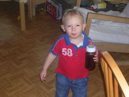 Mijn weekendje was héél fijn, het was zo al een heel klein beetje feest voor me. Vrijdag zag ik eindelijk mijnen dikke vriend terug... Ons mama haar ventje heeft een weekje in het ziekenhuis gelegen En eigenlijk vond ik dat niet zo fijn want ik miste hem wel. Dus jaaa ik was héél blij dat ik hem vrijdag terug zag en hij weer gek met me kon doen. Zo blij dat ik hem zaterdagmorgend toen ik wakker werd direct wou gaan knuffelen. Maar hij was al dada en dat snapte ik even niet zo goed, ben hem overal gaan zoeken: in de slaapkamer, de keuken, de badkamer, maar noppes Johan was wel echt dada, mama had gelijk en ze moest er best mee lache mij bezig te zien. Mijn ochtendritueeltje was plots veranderd want als ik anders smorgens uit men nestje kom begin ik direct achter drinke te vragen en nu zag ze mij als een kieke zonder kop het huis doorholle ... Maar hij was snel terug bij ons hoor, en ikke blij hihi... s'Avonds ben ik dan bij ons maa'ke dodo gaan doen want ons mama ging nog eens op stap. Ik was toch een beetje triest toen mama vertrok, zei 'mama weg' en moest toch wel even wenen, maar heeft maar 5 minuutjes geduurd. Sinja heeft dan met mij wat gespeeld en ze wist dat ik gek was van bumba dus heeft me op de laptop filmke van bumba laten zien en dat vond ik natuurlijk geweldig. Maar toen het filmke gedaan was zei ik toch weer 'bumba weg' en ook 'mama weg' dus miste haar echt nog wel zenne maar moest ni meer wenen dan. Jaja kan ik wel ne flinke vent zijn als ik wil, ben flink gaan slapen, s'morgens flink boterhammekes gegeten... en superblij dat ik ons mama terug zag :) hihi... Begon natuurlijk wel weer de clown uit te hange toen ik mama zag, maar ja was eigenlijk ook een beetje moe want het was stilaan tijd voor men middagdutje. Eens thuis was het eerst al een heel klein beetje feest Maandag word ik 2 jaar en toen we weer thuis kwamen lagen er al een paar kleine cadeau'tje klaar hihi superfijn want nu kan ik ze al alleen opendoen. Spelen was voor later, want men bedje riep zo stilaan. En eens ik weer wakker werd had mama voor ons allen een lekker taartje meegebracht voor men verjaardag. Maar was nog ni zo goed wakker dus kaarsjes uitblaze was er nog ni bij, had er nog ff geen zin in, zal voor één van de volgende feestjes zijn, want ja er volgen nog wel wat feestjes voor men verjaardag hihi PLEZANT hé... t'Is alleen te hopen dat ik wat flinker ben want s'avonds heb ik het toch weer even uitgehangen. Kan soms zo een flinke vent zijn, toen mama en Johan naar een tuut waren gaan kijken ben ik eigenlijk héél flink geweest. Moest wel even geduld hebben want het duurde daar wel even bij den tuut maar al bij al ben ik toch flink geweest. Maar eens we thuis frietjes gingen eten ging het weer fout. Onozel doen en spelen met het eten ipv flink te eten. En ons mama heeft veel geduld, maar ineens was het gedaan en vloog zonder pardon men bed in... Zal moeten leren luisteren, benieuwd of dat goed gaat komen... je zal het hier allemaal nog wel lezen...