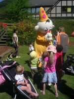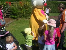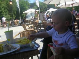 Gisteren was het een superleuke dag! Het was moederkesdag, en wij hebben er mama-Yuni'dag van gemaakt. We zijn naar 'Plopsa Coo' geweest! Het was wel 2 uurtjes rijden met de tuut, maar dat vond ik ni erg, want al gewoon naar buiten kijken vanuit de tuut vond ik al héél fijn. Maar dan kwamen we toe waar mama had beloofd het héél fijn ging zijn. En/of het dat was, het was gewoonweg fantastisch! En wie nu eigenlijk van ons het klein kind was heb ik nog steeds het raden naar hahaha... ons mama is niet zoals al die andere mama's das héél duidelijk. Eigenlijk mocht ik nog nergens op want ik ben nog net ietsje kleiner dan 85cm (welgeteld een halve centimeter) Maar dat was dus helemaal ni erg want dan kon ons mama nog eens het groot klein kind uithangen dus jaaaa tuurlijk is ze met mij overal opgekropen! Tot mijn groot plezier natuurlijk, ik heb het met momenten echt uitgeschaterd. Na een lange rit, zijn we begonnen bij de fontijnen zodat we ons een beetje konden verfrissen, alé verfrissen, ons mama liet me daar mee rondlope maar had natuurlijk ni door dat die fontijnen plots naar boven begonne te spuiten, dus ni een beetje verfrist maar helemaal nat jaaa Dan zijn we maar een beetje in het zonnetje gaan wandele om een beetje op te drogen en te zien wat er allemaal te beleven viel. Ons mama had zowat in haar hoofd wat we allemaal konden uitspoken, maar eerst flink eten dat we sterk waren om vanalles uit te steken. Dat hebben we dan ook gedaan, mmm lekkere frietjes gegeten, gezellig op het terras vlakbij de watervallen. En dan zijn we aan onze avontuurtjes begonnen. We zijn gaan bobslee rijden, daar was ik eerst een beetje bang op tot ik mama hoorde lache, ben ik ook maar beginne lache, en dan gingen we ineens snel de bochten in jaja dan was de schrik snel weg want vond ik weer cool. We zijn dan iets rustiger met de auto's gaan rijden, ik heb daar maar snel het stuur overgenomen want we waren nog ni vertrokke of ons mama zat al tegen de vorige auto. Al een chance dat ik nen held in dat soort dinge ben. Dan zijn we gaan rondhuppelen met de konijntjes, was wel fijn ik ging op en neer en zat helemaal vooraan op da beest en links en rechts kon ik dan plop of kwebbel zien. We waren van plan dan iets rustiger te gaan doen, maar plots hoorde mama mij héél luid "bumba" roepen. Jaja die ken ik al goed, moest maar een klein glimpje zien om te weten dat bumba daar rondliep. En ja hoor ik had gelijk! Dus mama en ik hopla tot bij bumba, hij had wel ni veel tijd want ja er zijn natuurlijk héél veel kindjes maar heb hem toch gezien, was zo blij!!!! Heb de ganse dag niks anders meer gezegd dan: bumba, bumba, bumba,... zelfs toen ik ging slape hoorde mama me er nog over bezig in men bedje We hebben het ganse park dan nog eens bekeken door met het toeristisch treintje te gaan rijden, fijn hoor de bergen in enzo, en zo konden we ne keer goed zien. En tot slot zijn we in de zeteltjeslift geweest, je kent dat wel de grote mensen kennen dat van het skiën. Amai dat vond ik weer plezant eerst hopla helemaal naar boven en als je dan naar beneden keek waren alle mensen klein en hingen wij boven het water te bengelen. Daarna weer naar beneden, toen deed het een beetje kriebel kriebel in mijn buik. Voila se en zo kwamen we tot de volgende attractie namelijk terug den tuut in en naar huis bollen. Veel weet ik er ni meer van want deed men oogjes open en we waren bijna thuis dus jaja ikke voldaan een goed tukie gedaan in de auto!! Thanks lieve mama ik vond ons dagje superfijn, en jij ook denk ik want heb jou constant zien lache en gibbere.