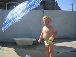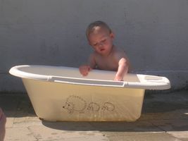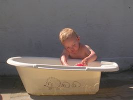 Hallokes allemaal, wij hebben vandaag genoten van een dagje vrijaf, jullie ook?! Eerst en vooral goed uitgeslapen, het was pas 9u dat we zijn opgestaan vanmorgen. We hebben gelijk onze kleren aangetrokken en met de fiets richting bakker en beenhouwer gereden. Eens thuis lekker gegeten en ons goed ingesmeerd met zonnecrème, zijn we weer op route getrokken met de fiets. Mjaja eens we hier wonen hebben we al meer de fiets genomen dan vroeger... en met dit lekkere weer is het dan ook héél plezant. We zijn weer den dijk opgetrokken en richting Sint-Amands gefietst, we hebben daar gezien waar we de volgende keer de overzet kunnen nemen en waar we ook eens een keertje met de boot de Schelde op kunnen. Maar allemaal voor de volgende keer, want het was stilaan tijd voor een tukie, want werd een beetje moe. Ons mama heeft dan ff in de tuin in het zonnetje gelegen, en vond het een beetje spijtig dat er nog geen zwembad was, mja we vinden het ni direct maar ze heeft er wel iets op gevonde hihi en ikke blij. De parasol hebben we gelukkig na ff zoeken ook gevonden, want het zonnetje zit een ganse namiddag op onze tuin dus schaduw moete we zelf maken. Voor het eten moest ik ff binnen blijven mocht mama beetje helpen met vanalles aangeven... mja en zo'ne kleine snotterd als ik vind zoiets nog plezant ook natuurlijk, mama helpen. En zij heeft het geweten ook een beetje later mocht ik mee helpen ramen en auto kuisen, met de spons spele, geweldig vind ik dat... en mama blij Dan nog even voor de tv knuffelen en hopla het was weer bedje in en hop naar morgen, slaap wellekes x